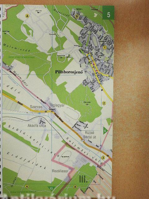 1:20 000/Tömegközlekedés/Kerületszínezés/Egyirányú utcák/Házszámozás/Belváros 1:12 500/Postai irányítószámok