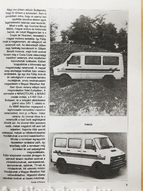 Örömünkre szolgál tájékoztatni Önt arról, hogy először Magyarországon megrendezésre kerül egy nemzetközi terepjáró-autós és motoros rali verseny 1988. november 1-5. között. A verseny tervezett útvonala 1500 km, amely távot a versenyzők Budapestről kiindulva és Budapestre érkezve az ország szebbnél szebb tájain teszik meg. Vissza
