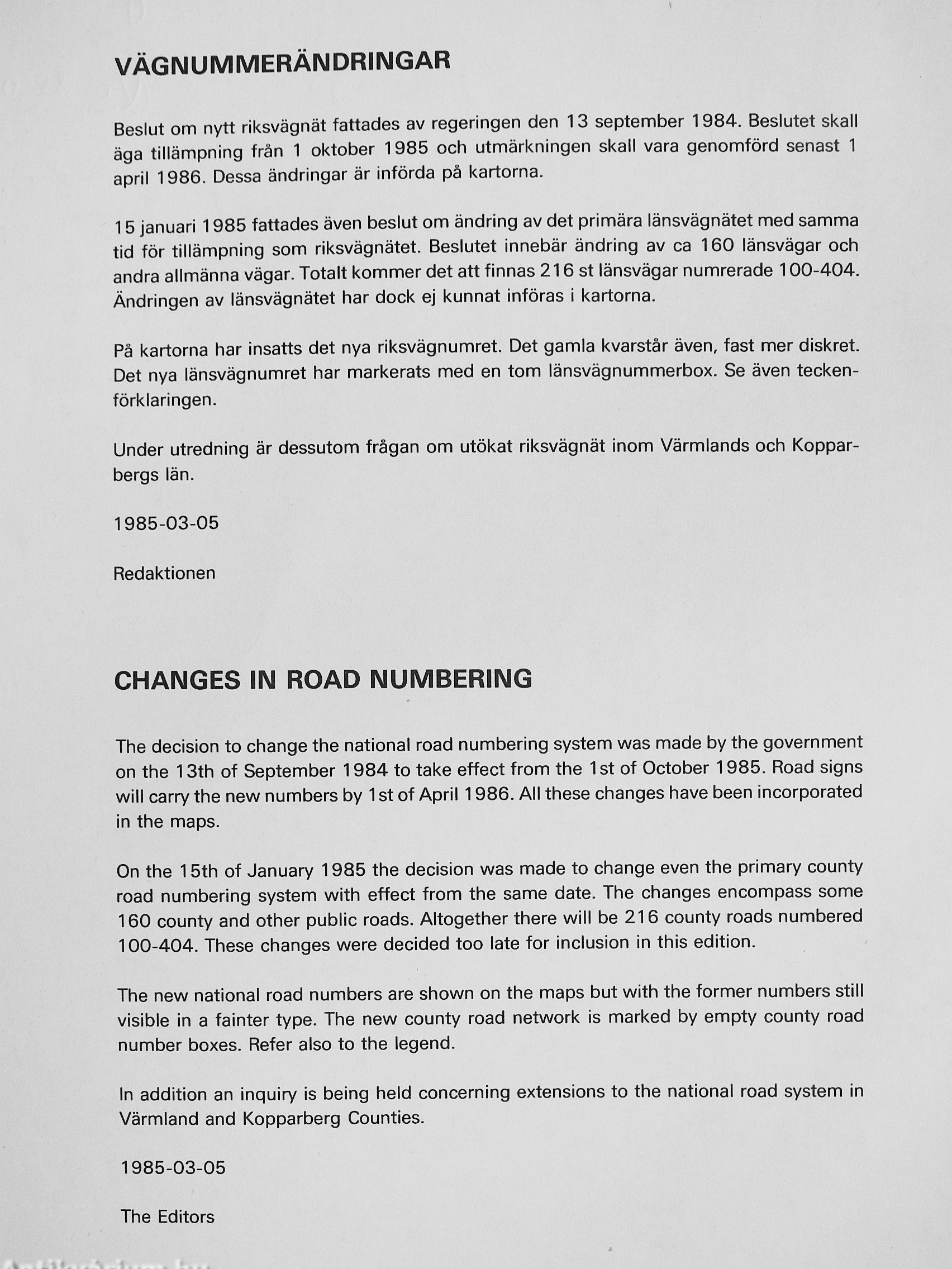 hittills fastställda nya vägnummer är medtagna