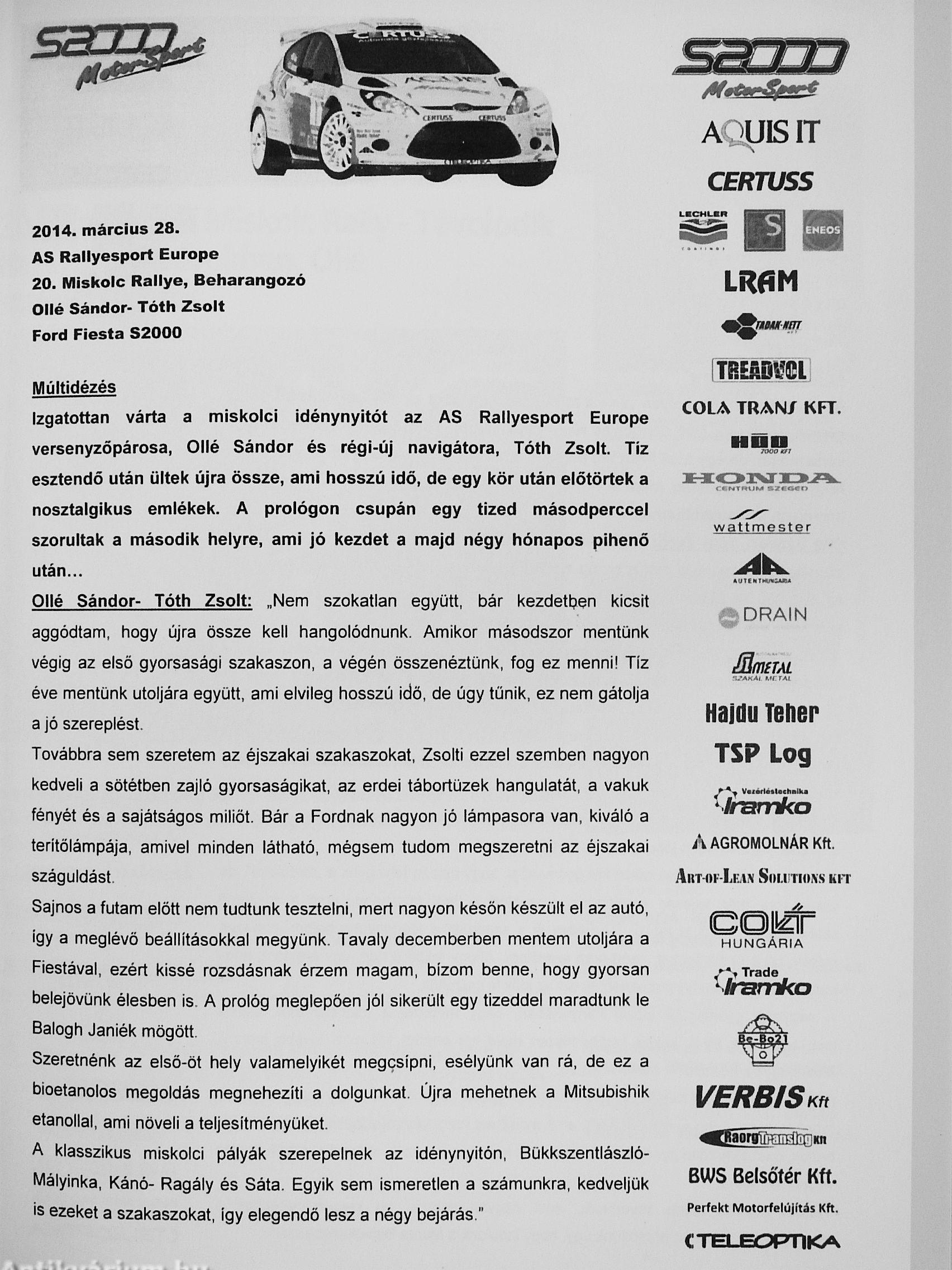 MotorSport éves beszámoló 2014. MotorSport éves beszámoló 2014. MotorSport éves beszámoló 2014.