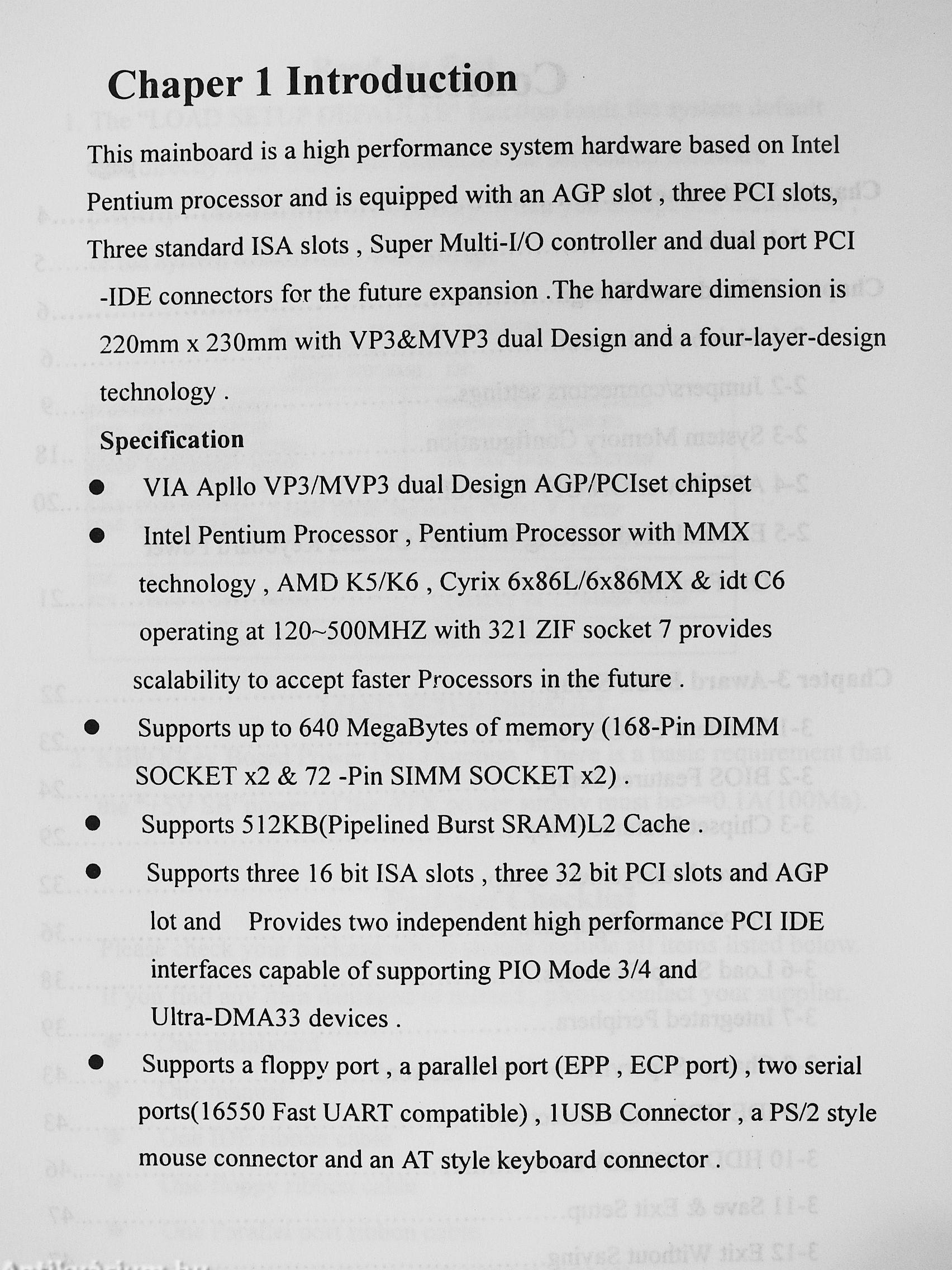 Apollo VP3/MVP3 AGP set/ISA//PCI/AGP Main Board/With Qnboard PCI IDE and Super Multi-I/O/Mother Board/Main Board User's Guide