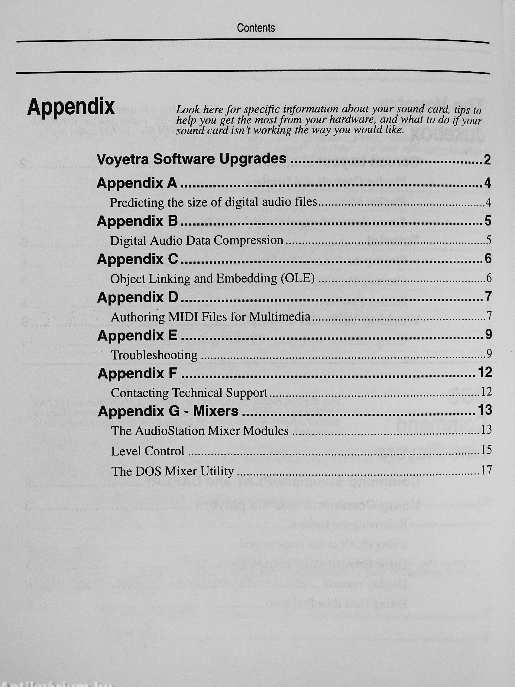 This Limited Warranty gives you specific legal rights and you may also have other rights which vary from state to state. Some states do not allow the limitation or exclusion of implied warranties or of consequential damages, so the above limitations or exclusions may not apply to you. You agree that this is the complete and exclusive statement of the Agreement between you and Voyetra which supersedes any proposal or prior agreement, oral or written, and any other communications between us regarding the subject matter of this Agreement. This Agreement shall be construed, interpreted and governed by the laws of the State of New York, except the federal laws which govern copyrights and registered trademarks. If any provision of this Agreement is found unenforceable, it will not effect the validity of the balance of this Agreement, which shall remain valid and enforceable according to its temis.