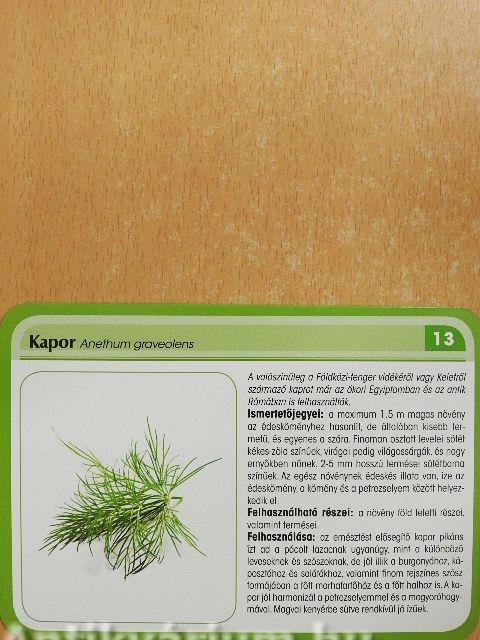 A fűszernövények az ízek összehasonlíthatatlanul gazdag változatosságát kínálják az ínyenceknek. Ez a praktikus doboz 50'kártyán, látványos fotók segítségével mutatja be a száz legfontosabb fűszernövényt. Tömören és érthetően ismerteti mindazt, amit e növények származásáról, történetéről, külső megjelenéséről és konyhai felhasználásáról tudni érdemes. Fedezzük fel a fűszernövények sokszínű világát!