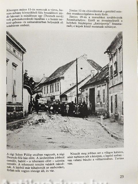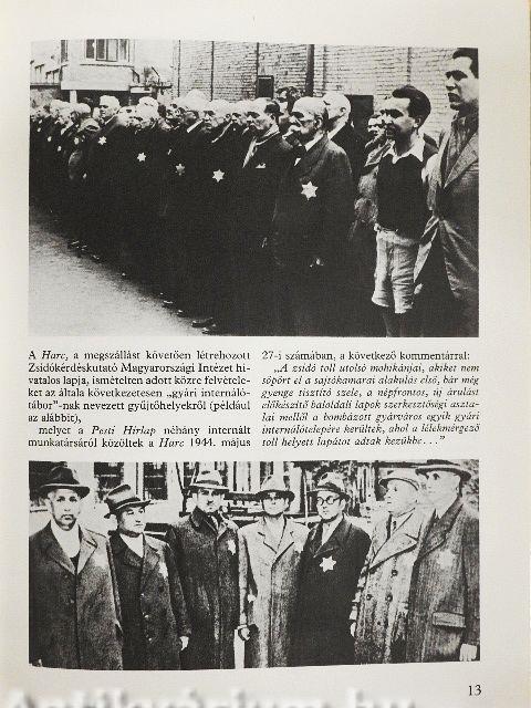 Annak a jóvátehetetlen évnek, annak a gyalázatos évnek a fénykép-krónikája ez a könyv. Mert bármily hihetetlen: fényképek maradtak ránk. Pedig talán ki sem kellett hirdetni annak idején, magától is érvényesült a fényképezési tilalom, ugyan ki kockáztatta volna fotó-masináját csendőrök, rendőrök, géppisztolyos német őrök közel s jelenlétében? Mégis voltak, akik tisztes távolból vagy ablaküvegen keresztül vagy katonai keret-tagok tudtával, beleegyezésével fényképeket készítettek. Sőt, olyan eset is előfordult, hogy SS-legények fényképalbumot állítottak össze a jólvégzett munka közös emlékére... S ahogy minden egyes túlélő esetében a véletlenek egész sorának szerencsés összetalálkozásán múlt a megmaradás, ugyanúgy ezek a felvételek is odaveszhettek volna örökre.