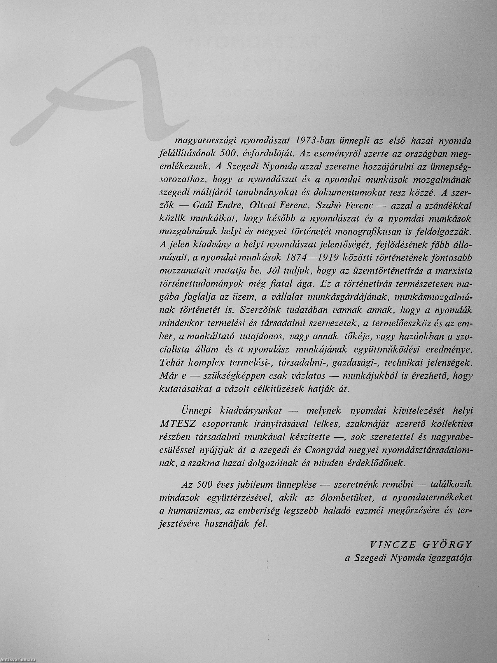 | Megjegyzés: | Fekete-fehér fotókkal illusztrálva. Megjelent a magyarországi könyvnyomtatás 500 éves évfordulójára. |