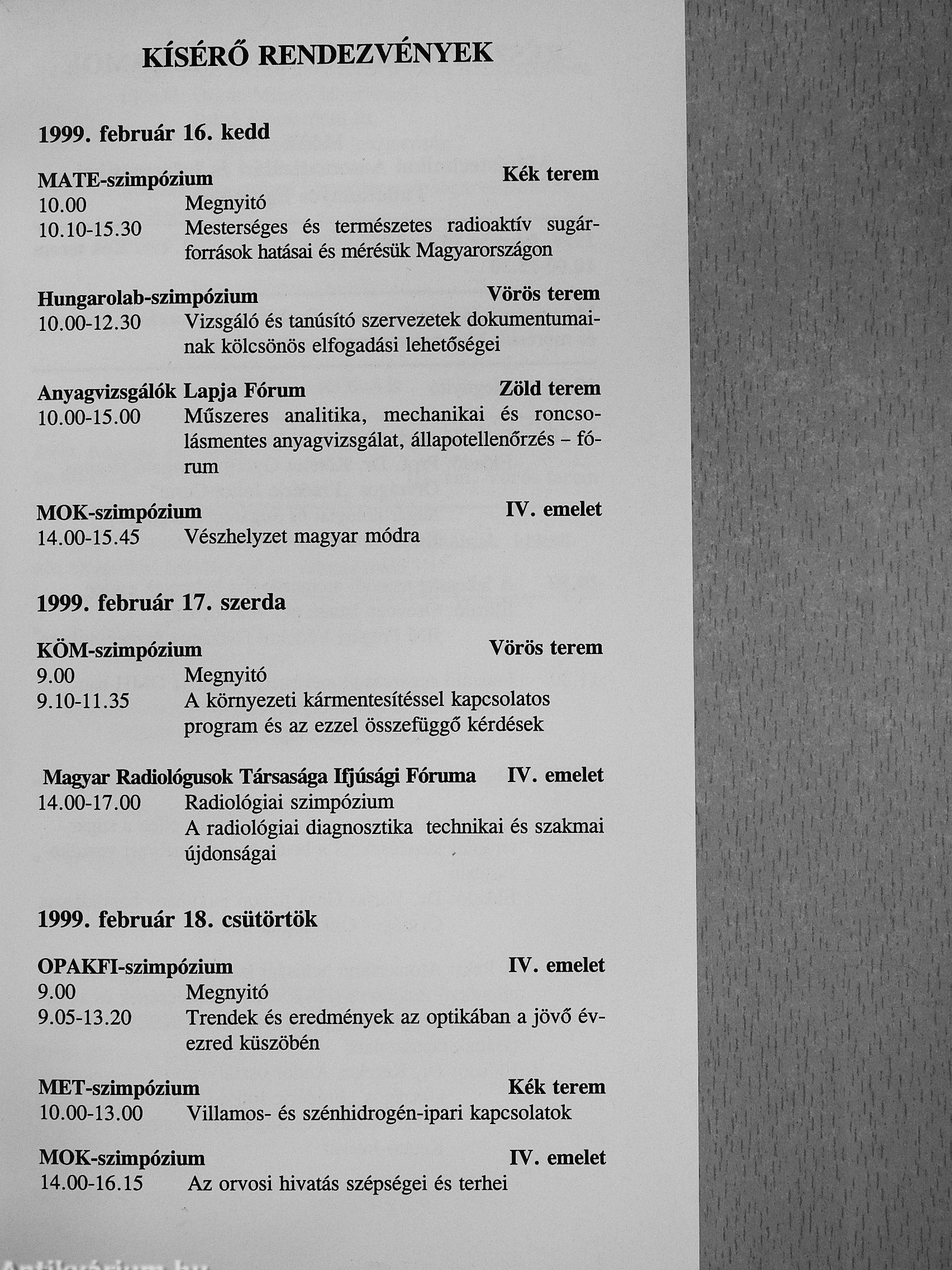 16. Nemzetközi Szakkiállítás és Szeminárium 1999. február 16-19.