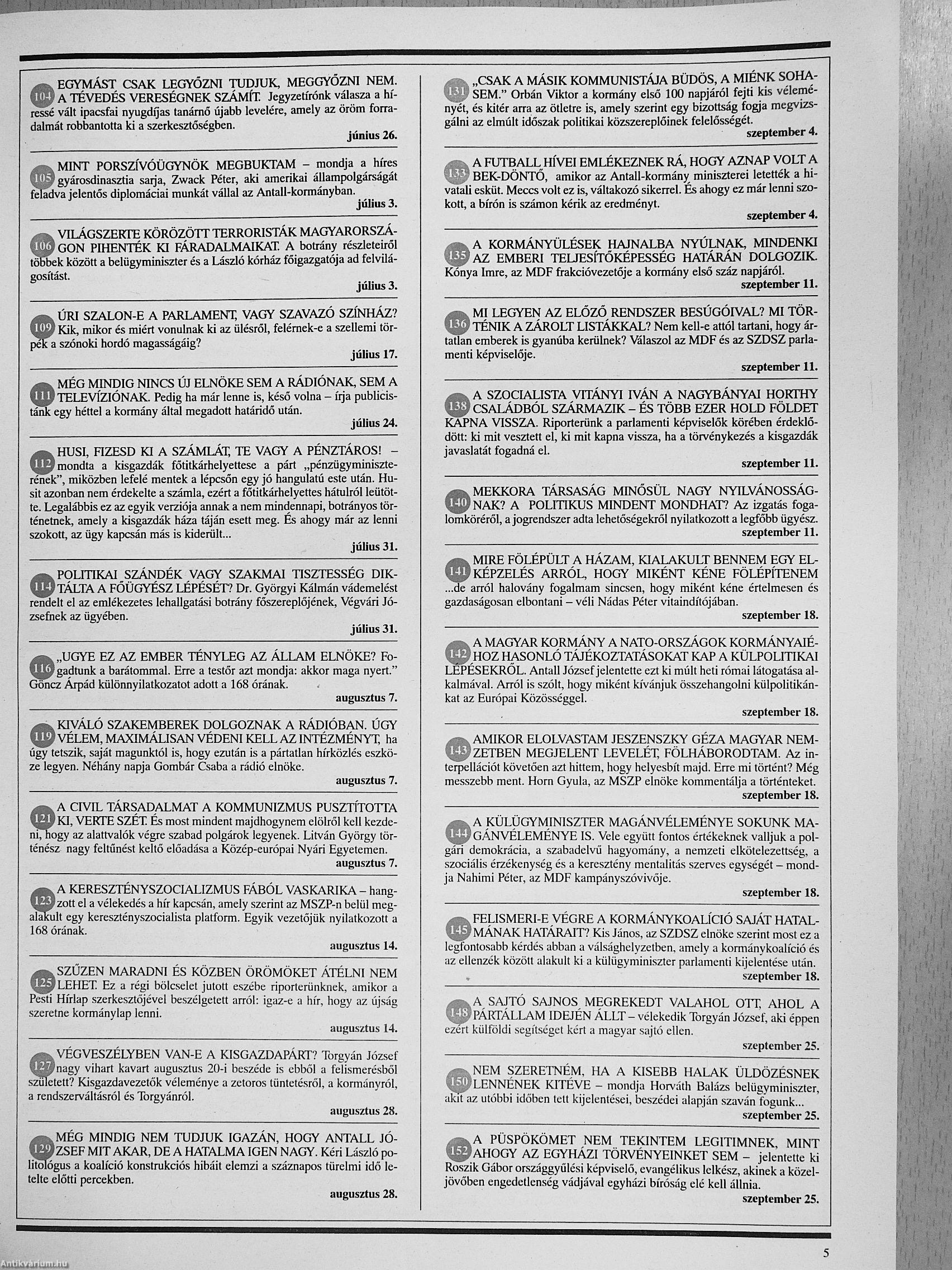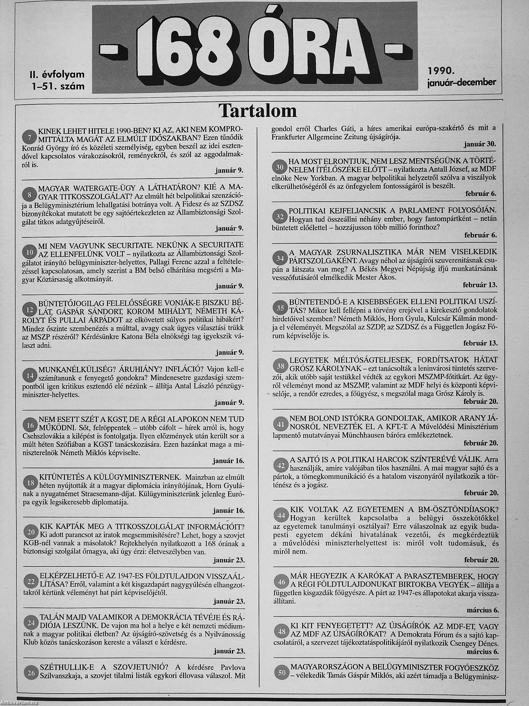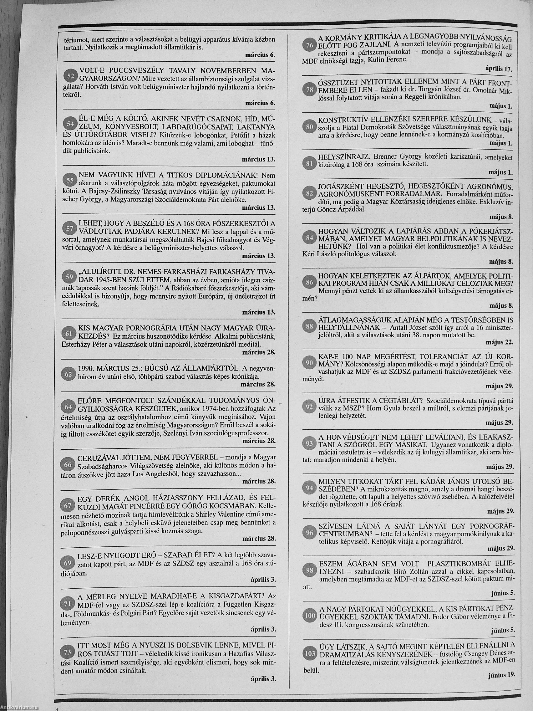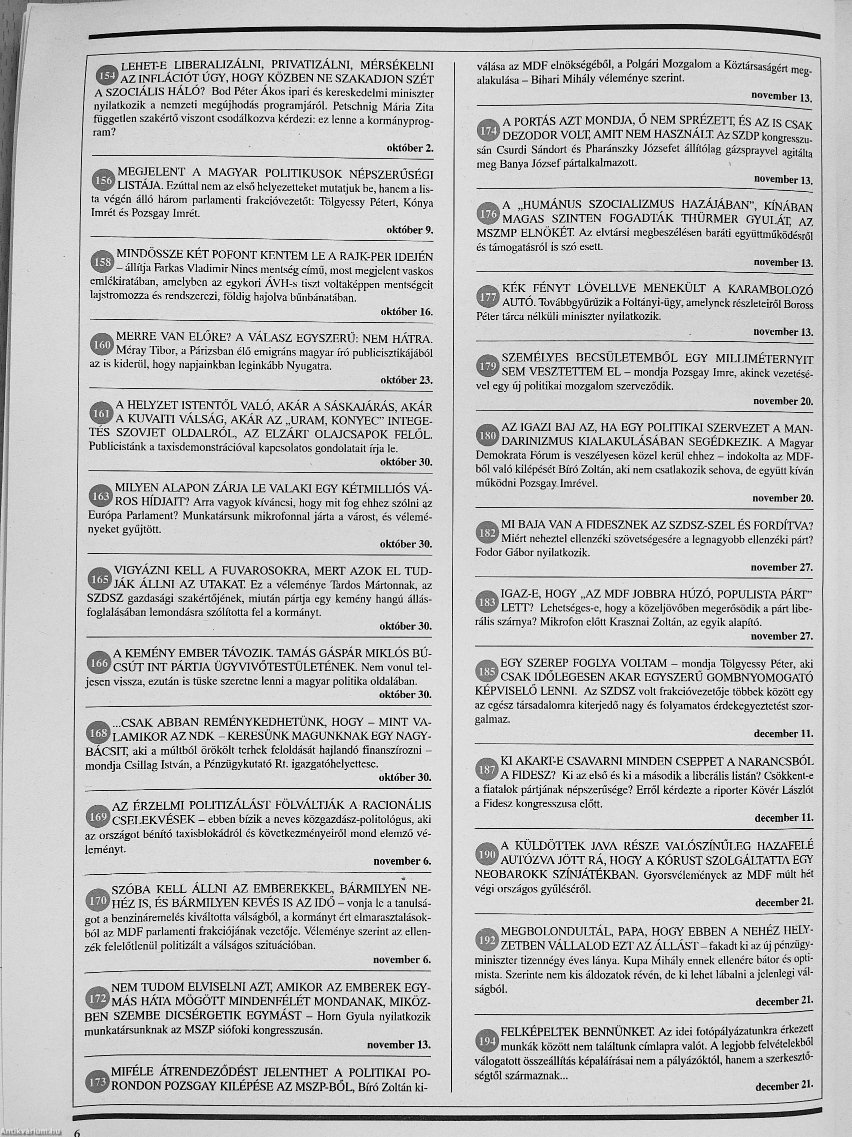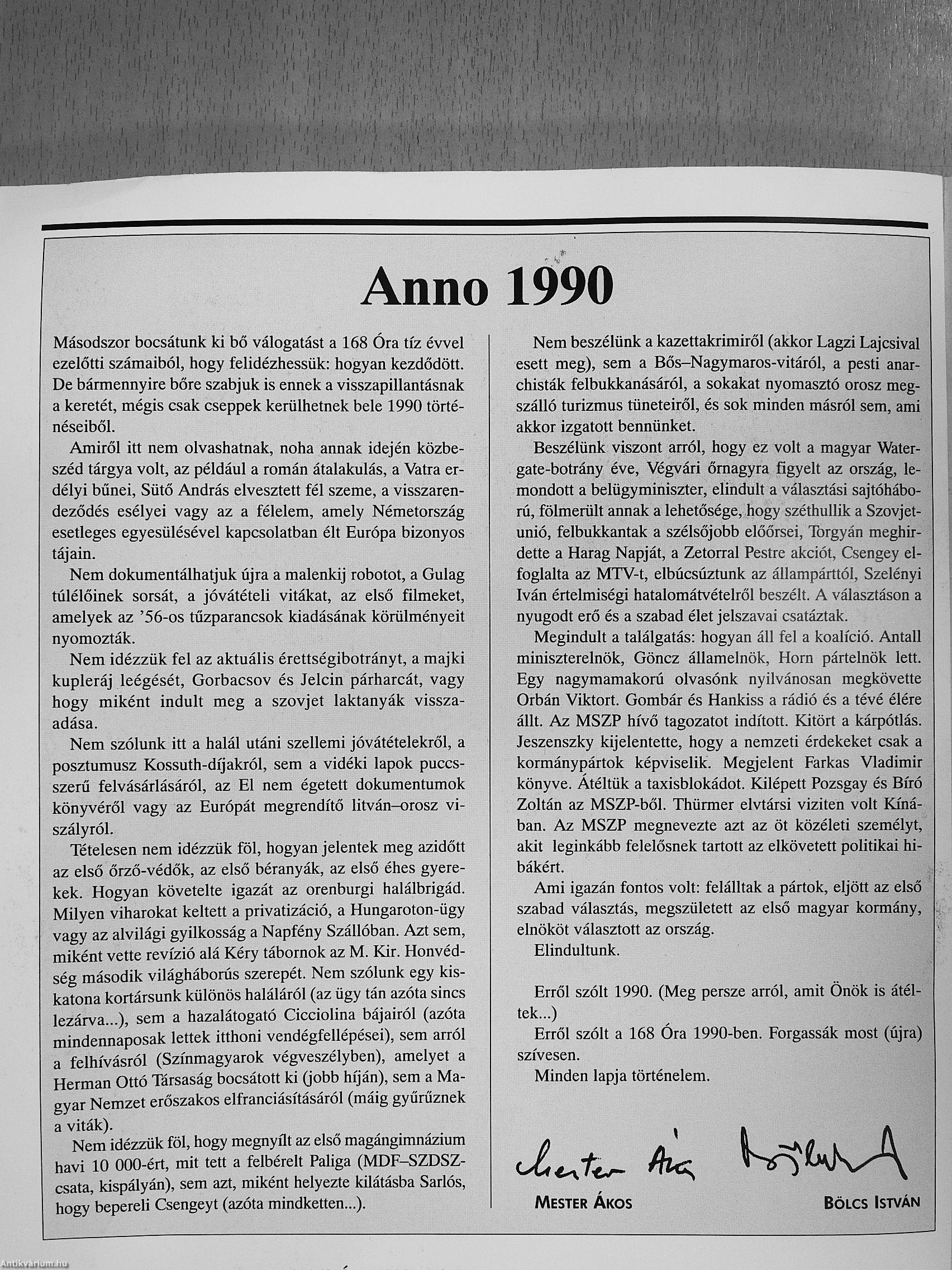| Megjegyzés: | Válogatás a 168 Óra 1990-es évfolyamából, a teljes lapszámokat nem tartalmazza. Fekete-fehér fotókkal. Reprint kiadás. |