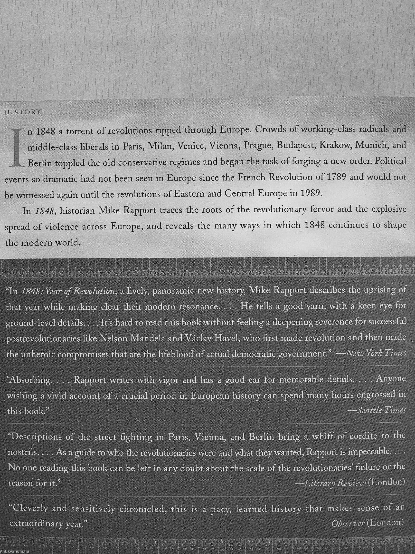 "In 1848: Year of Revolution, a lively, panoramic new history, Mike Rapport describes the uprising of that year while making clear their modern resonance. He tells a good yarn, with a keen eye for ground-level details It's hard to read this book without feeling a deepening reverence for successful postrevolutionaries like Nelson Mandela and Vaclav Havel, who first made revolution and then made the unheroic compromises that are the lifeblood of actual democratic government." —New York Times