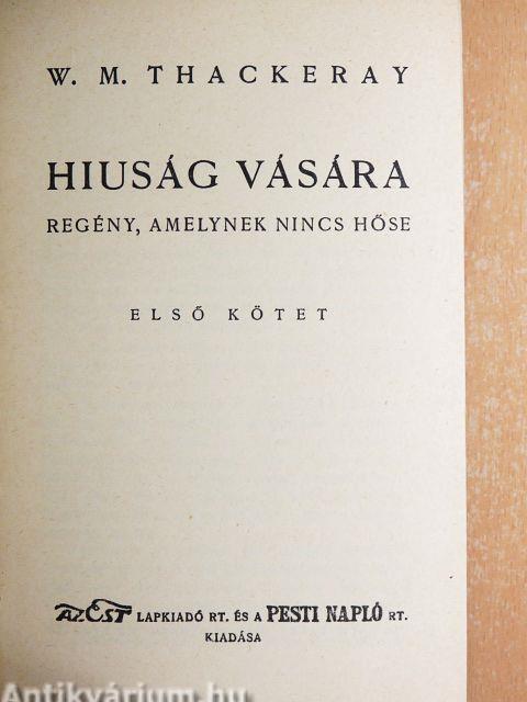 W. M. Thackeray: Hiuság vására I-II. (Az Est Lapkiadó Rt. és a Pesti Napló RT. Kiadása, Budapest; ford.: Salgó Ernő) Filléres klasszikus regények