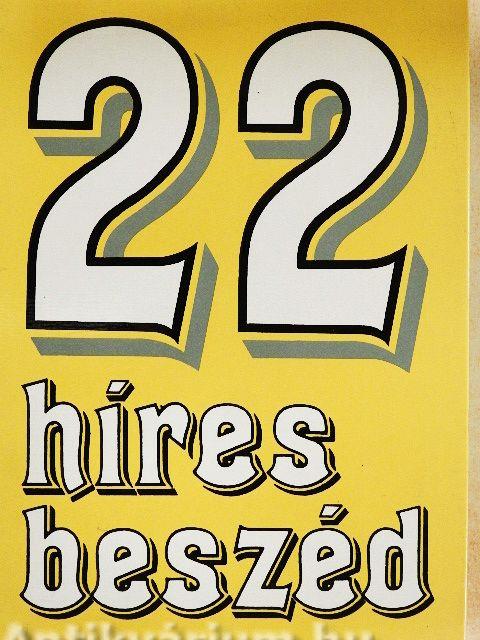 A 111 híres külföldi regény, a 66 híres magyar regény, a 77 híres dráma, a 44 híres eposz, a 88 híres vers a világirodalomból, a 99 híres magyar vers és az 55 híres opera után elkészült a 22 híres beszéd.