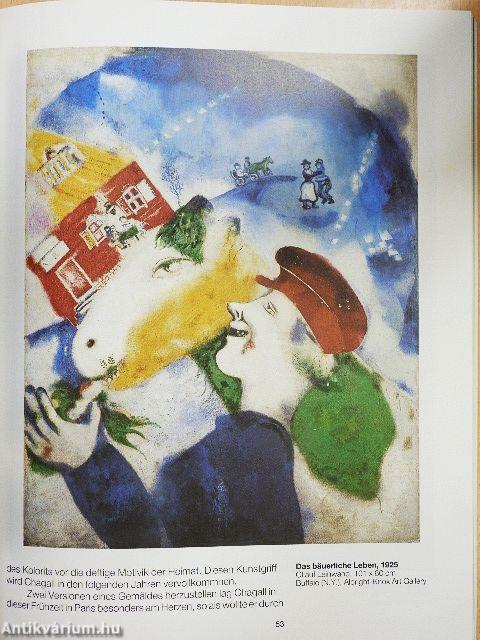 Mintha összekötő kapocs lett volna különböző világok között: zsidó, aki a képalkotás ősi tilalma iránt fensőbbséges megvetéssel viseltetett; orosz, aki megszabadult a honfitársaira gyakorta jellemző önelégültség béklyóitól. Ebben a fűzött kötetben Marc Chagall életrajzi adatain kívül 95 oldalon kb. 100 színes képillusztráció található.