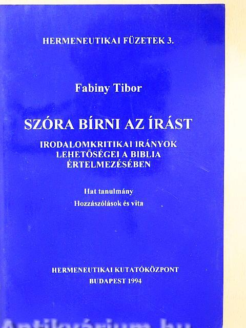 | Fábiny Tibor: Szóra bírni az Írást - Válasz Cserháti Mártának | 89 |
