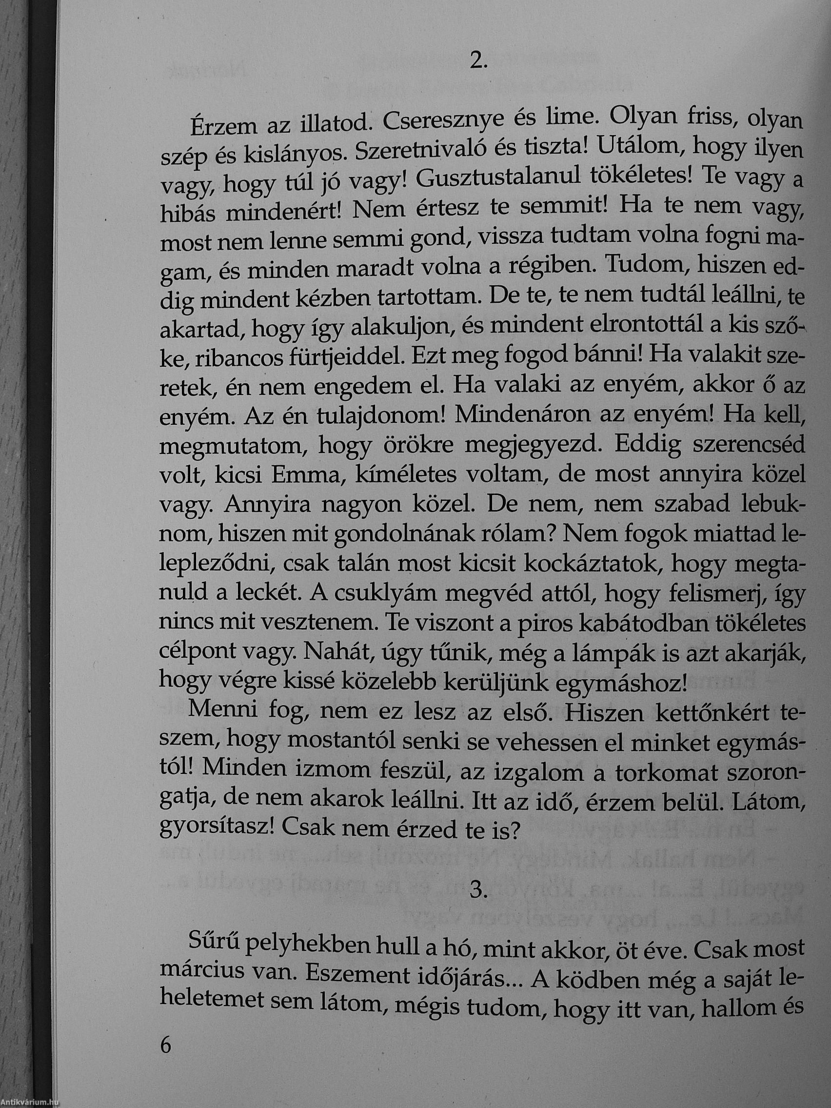 Emma, a szép, de félénk pszichológus úgy éh életét, mint egy áj?nyék, amely foljrton a napra vágyik. Azonban tudja, hogy há kimerészkedne saját aggodalmainak takarásából, talán ismét megsérülné, és azt aligha lenne képes még egyszer elviselni. Vajon kockáztasson, és nyisson ismét a világra? Lehet esélye egyszerre legyőzni önmagát és egy rettegett, titkos üldözőt is, hogy végül rátaláJjon a boldogság? Kön3rvünk főhősének az élete pár hónap alatt a feje tetejére áll: egyszerre jön a mindent elsöprő szerelem és valaki, aki az életére tör De vajon mel3^k a félelmetesebb?