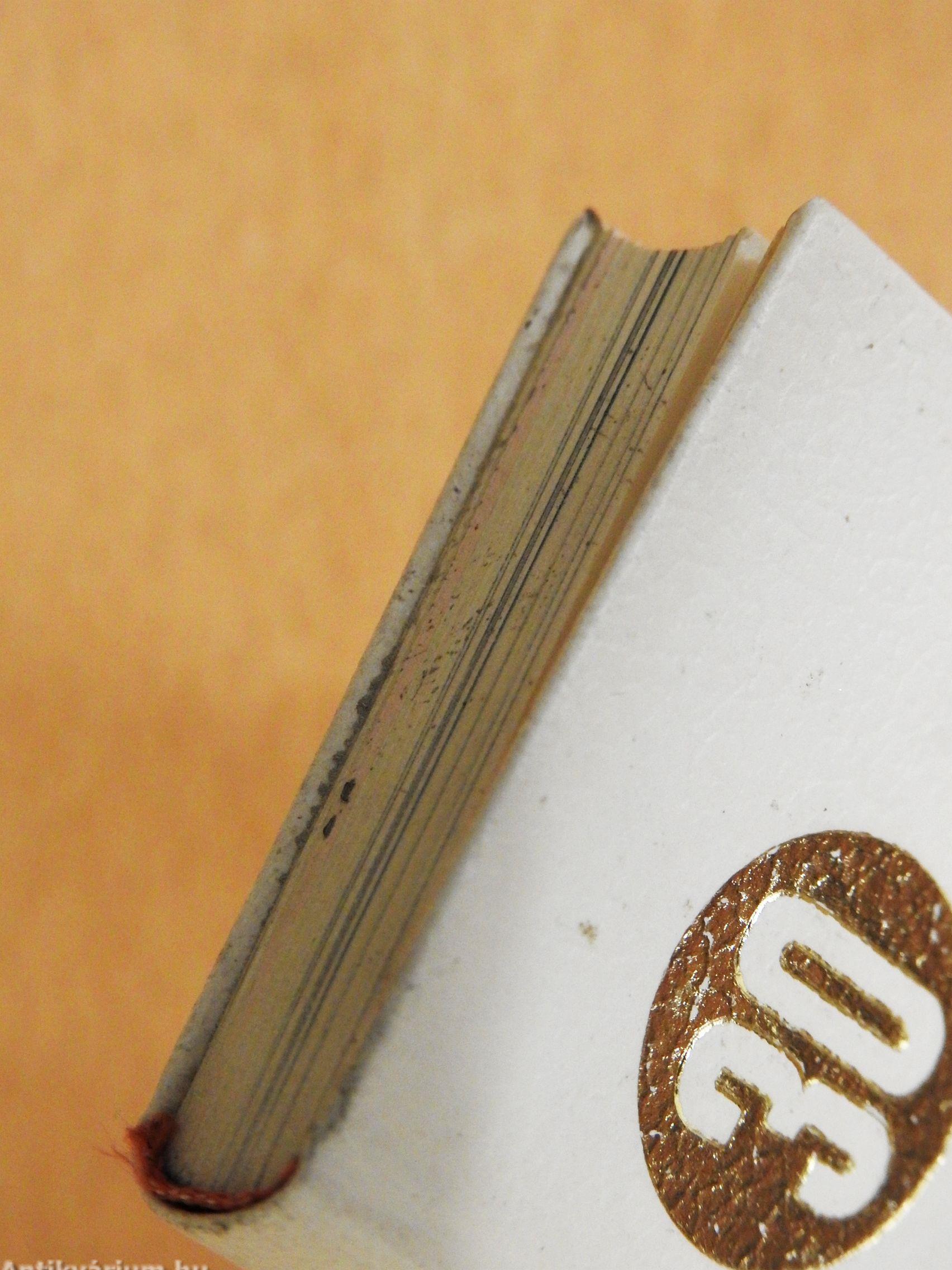 | Megjegyzés: | Kiadott példányszám: 600 Betűtípus: 5 pontos Gill Kiadási alkalom: Készült az 54. sz. Ságvári Endre Nyomdaipari Szakközépiskola és Szakmunkásképző Intézet fennállásának 30. évfordulója alkalmából. Kereskedelmi forgalomba nem került. Színes és fekete-fehér fotókkal, illusztrációkkal. A könyv pontos mérete: 48 x 65 mm. |
