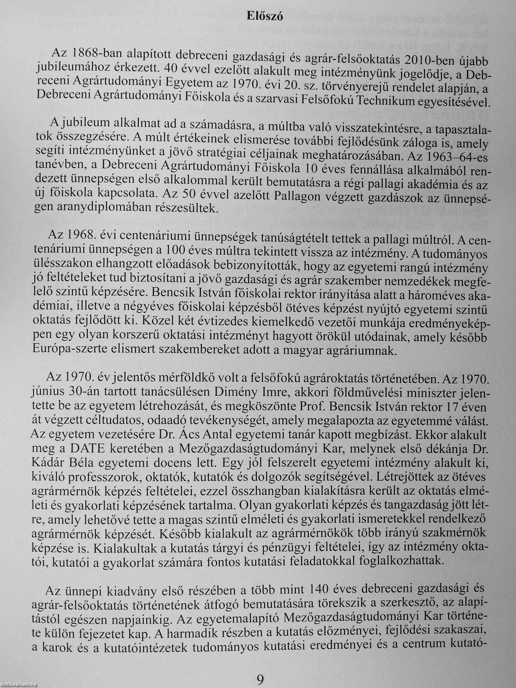 1970-2010/A Debreceni Agrártudományi Egyetem és a Mezőgazdaságtudományi Kar alapításának 40. évfordulójára