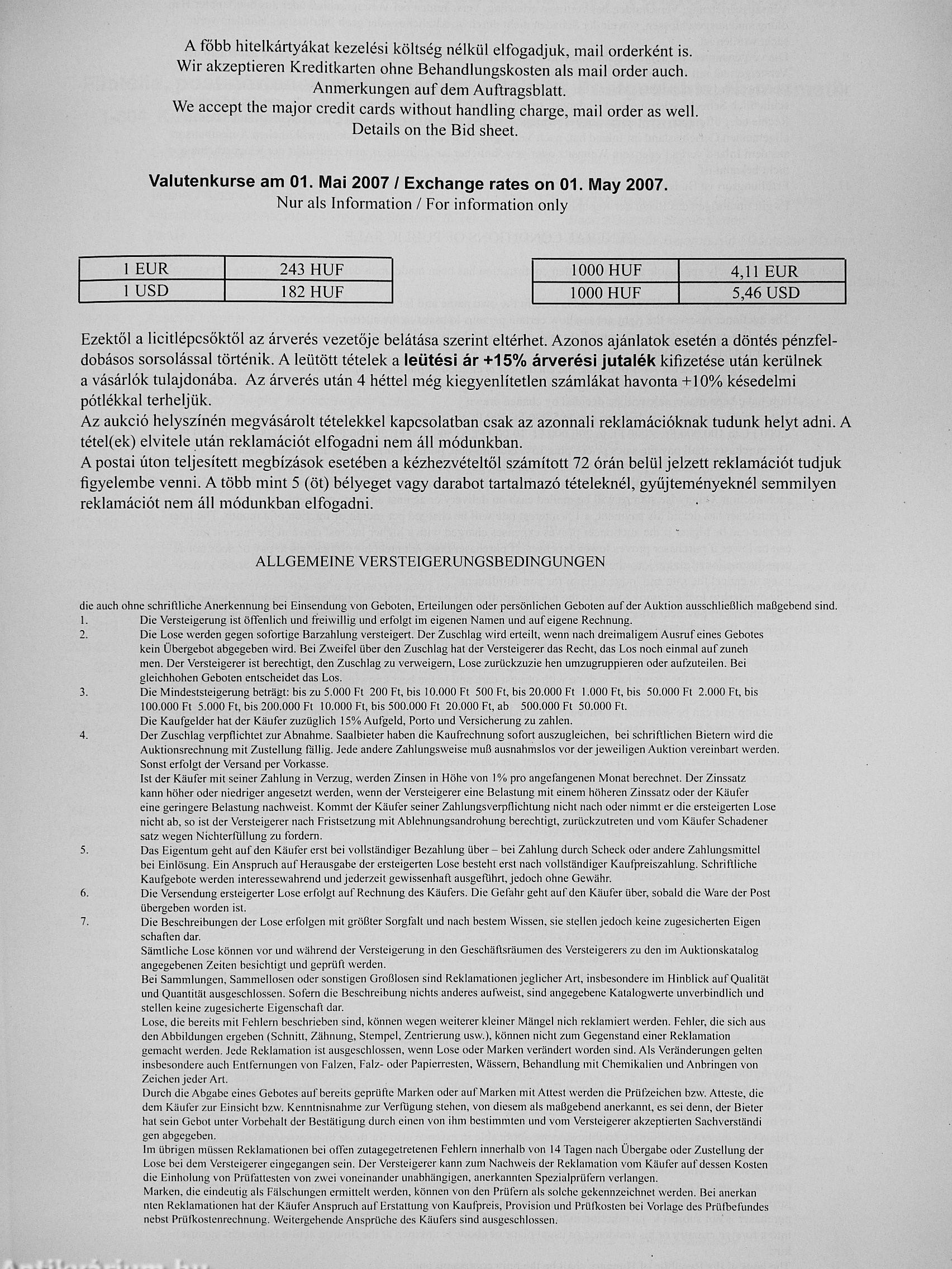 | Sorozatcím: | Nemzetközi filatéliai, postatörténeti, numizmatikai és képeslap aukció |