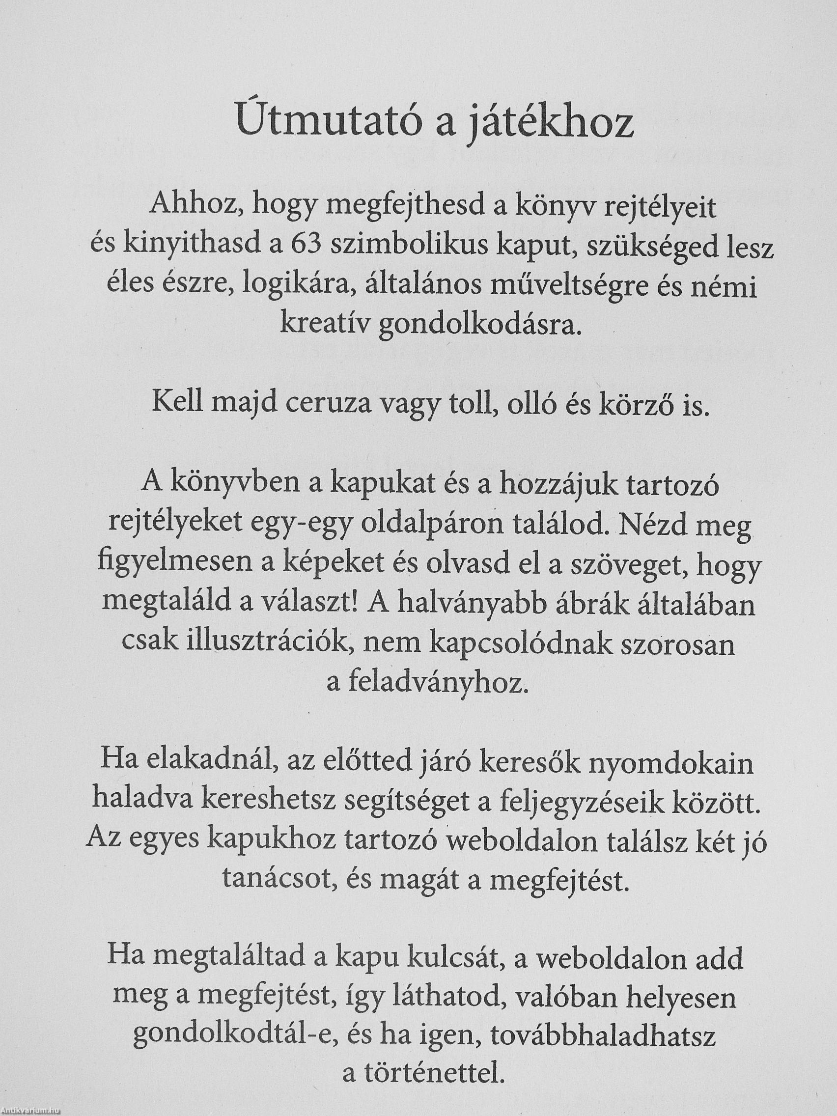 jihho^ hog^ me^ejthesda könyv rejtélyeit és kinyithasd a sit^jmbolikus kaput, s:!^kségedleso^éles logikára, általános műveltsége és némi kreatív gondolkodásra. ¦