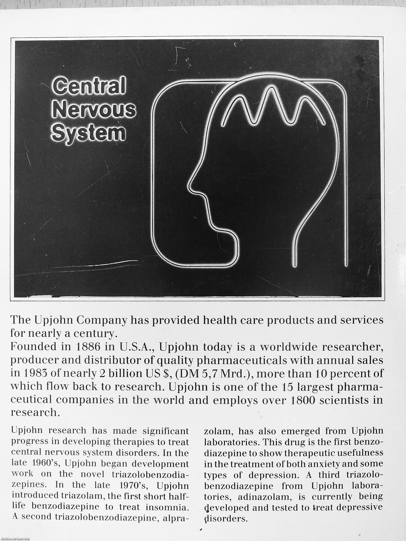 Founded in 1886 in U.S.A., Upjohn today is a worldwide researcher, producer and distributor of quality pharmaceuticals with annual sales in 1983 of nearly 2 billion US $, (DM 5,7 Mrd.), more than 10 percent of which flow back to research. Upjohn is one of the 15 largest pharmaceutical companies in the world and employs over 1800 scientists in research.