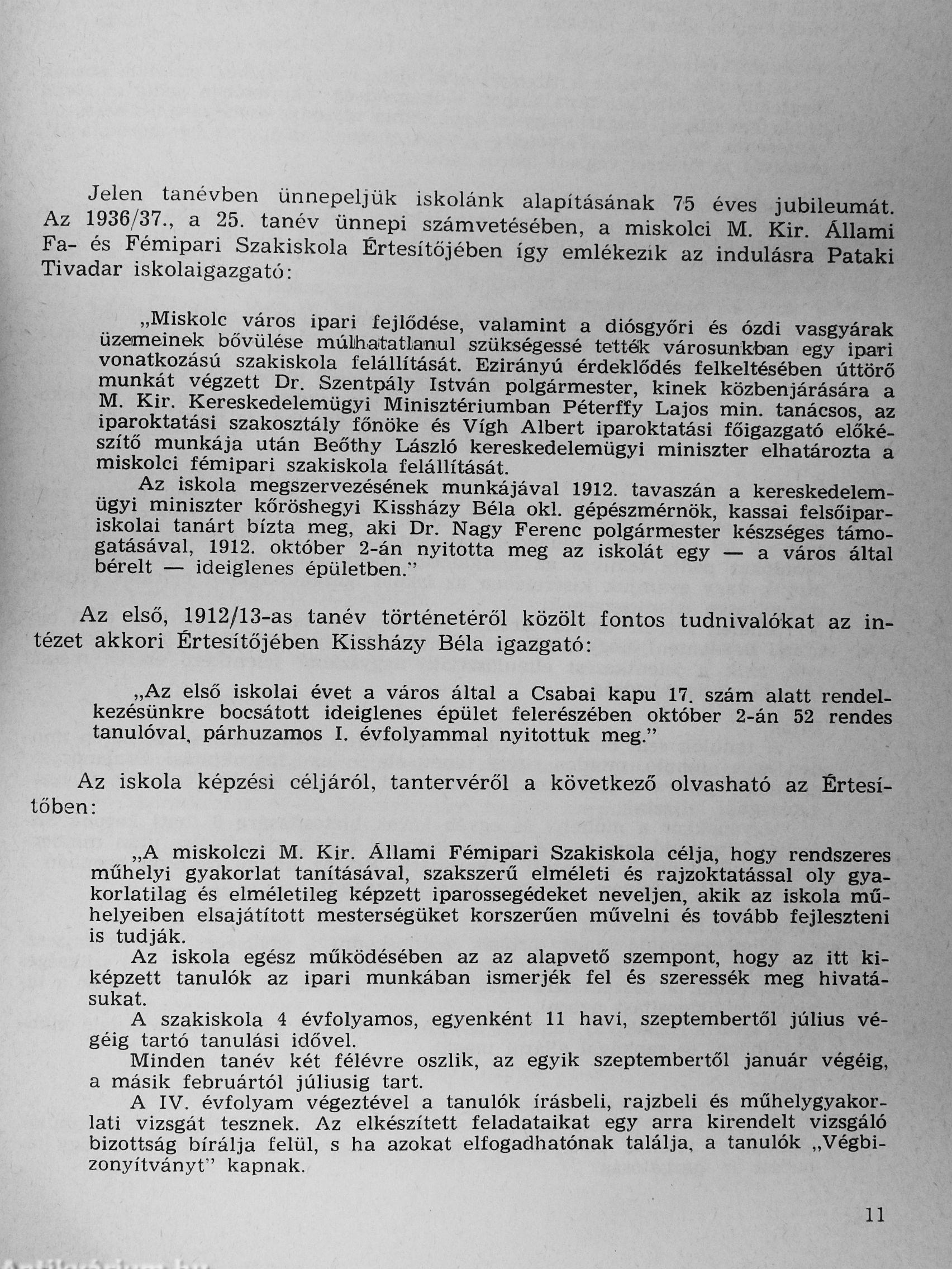 A 75 éves miskolci Zalka Máté Gépipari Szakközépiskola Jubileumi Évkönyve 1912-1987
