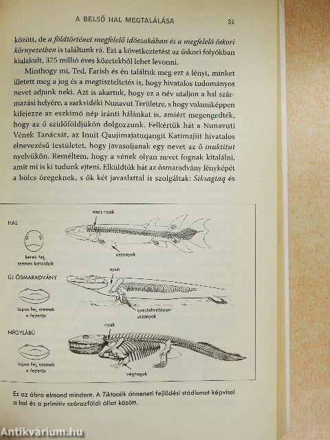 Ez a könyv azért születhetett meg, mert váratlan fordulatokat vett az életem. A tanári karban történt megüresedések következtében végül én lettem a humánanatómiai kurzus vezetője a Chicagói Egyetem Orvostudományi Karán. Az anatómia az tantárgy, amelynek keretében a többé-kevésbé beijedt elsőéves orvostanhallgatók emberi hullákat boncolnak, s közben igyekeznek megtanulni a test legtöbb szervének, nyílásának, idegének és véredényének nevét és felépítését. Ez jelenti számukra a látványos belépőt a medicina világába, afféle első nagy akadályt azon a hosszú úton, amelyet végigjárva orvossá válhatnak. Első ránézésre nálam alkalmatlanabb személyt nem is lehetne találni a következő orvosnemzedék kiképzésére: én ugyanis paleontológus, azaz őslénykutató vagyok, aki eddigi pályafutása során leginkább csak a halakkal foglalkozott.