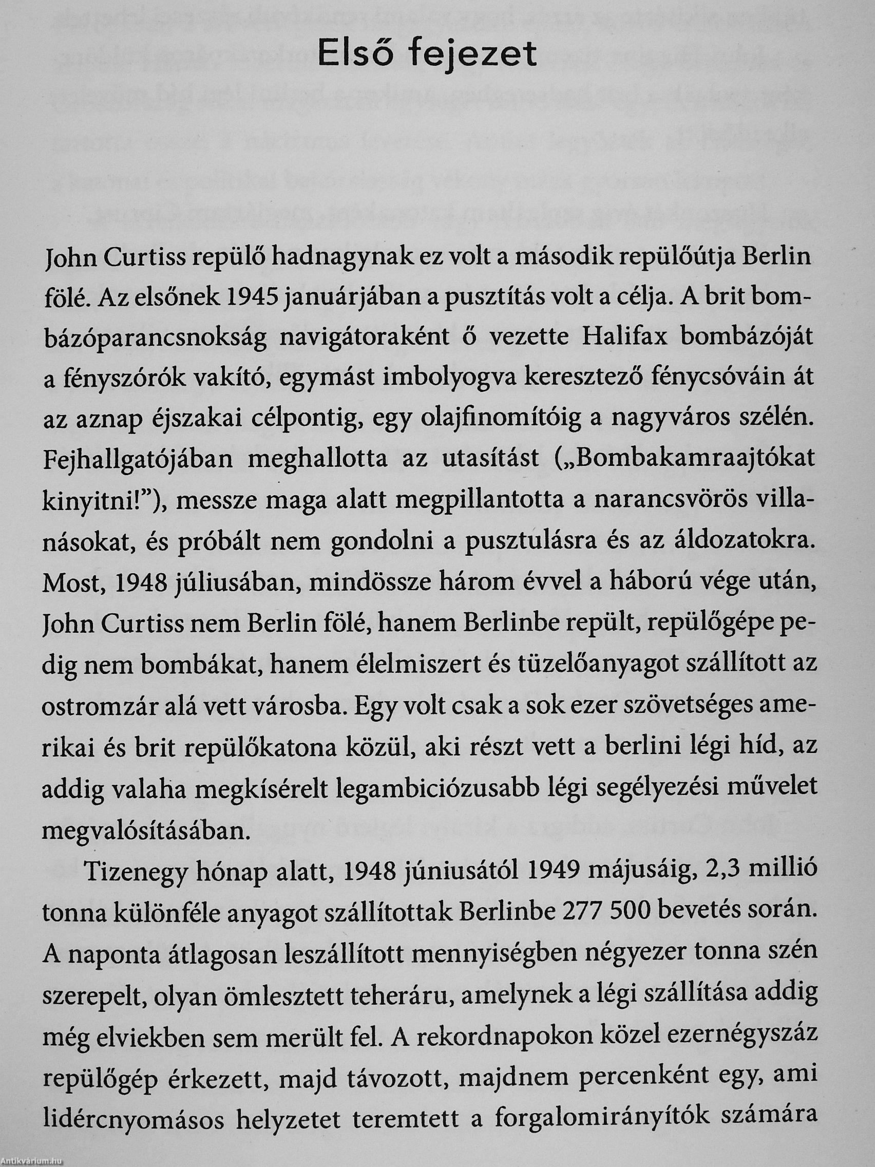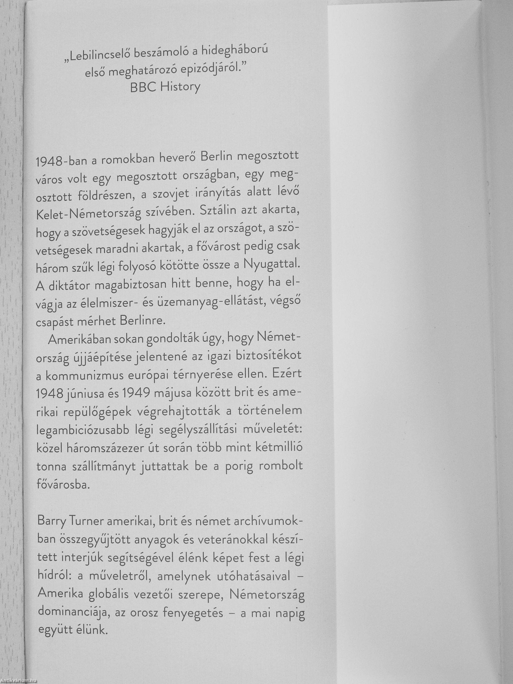 Barry Turner amerikai, brit és német archívumokban összegyűjtött anyagok és veteránokkal készített interjúk segítségével élénk képet fest a légi hídról: a műveletről, amelynek utóhatásaival -Amerika globális vezetői szerepe, Németország dominanciája, az orosz fenyegetés - a mai napig együtt élünk.