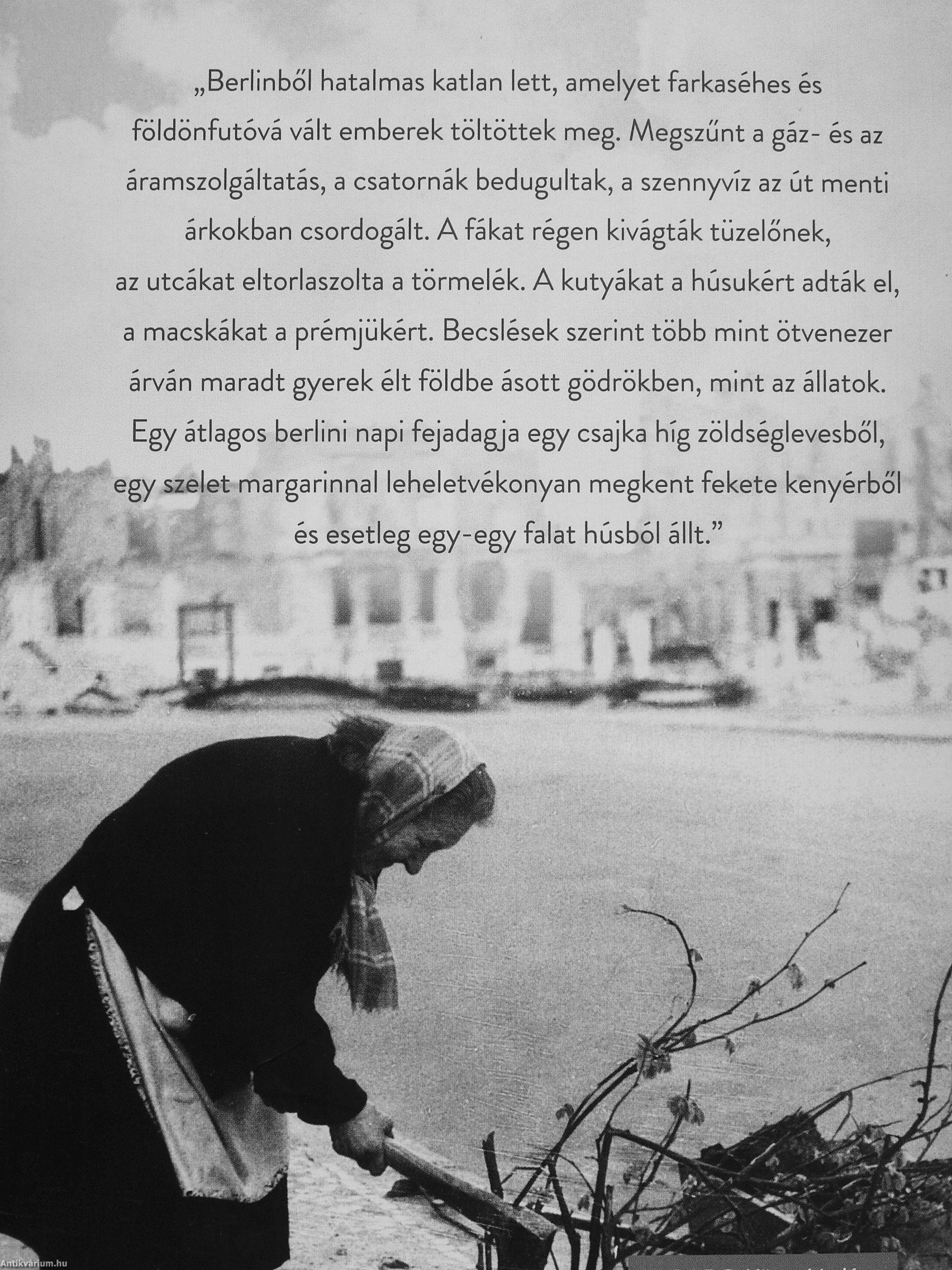 „Berlinből hatalmas katlan lett, amelyet farkaséhes és földönfutóvá vált emberek töltöttek meg. Megszűnt a gáz- és az áramszolgáltatás, a csatornák bedugultak, a szennyvíz az út menti