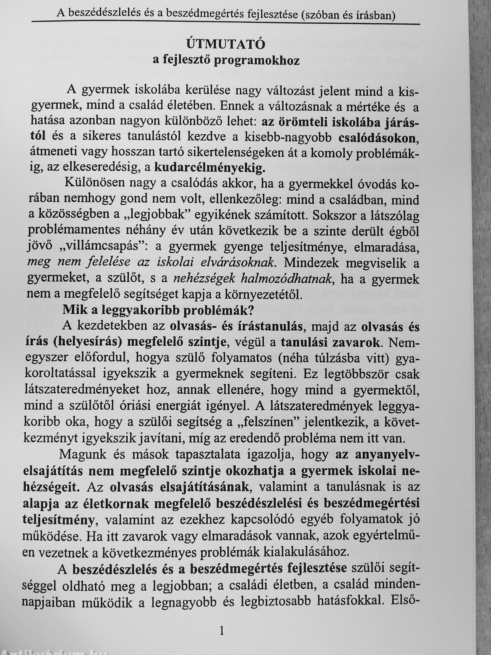 A beszédészlelés és a beszédmegértés fejlesztése (szóban és írásban)