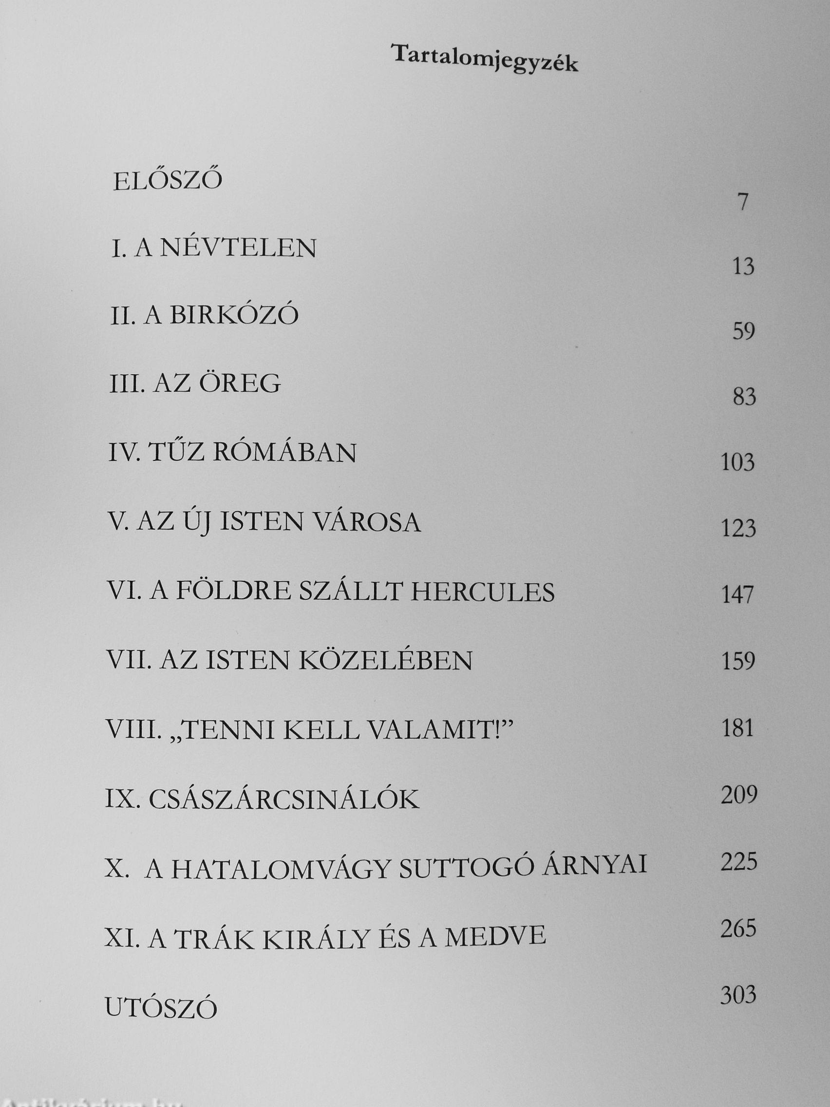 Ily módon kerül az udvarába egy fiatal birkózó is, akinek a sors sajátos utat jelölt ki Róma történelmének forgatagában. Ki ő? Honnét jött? Cselekedetei átkot vagy áldást hoznak a birodalomra?
