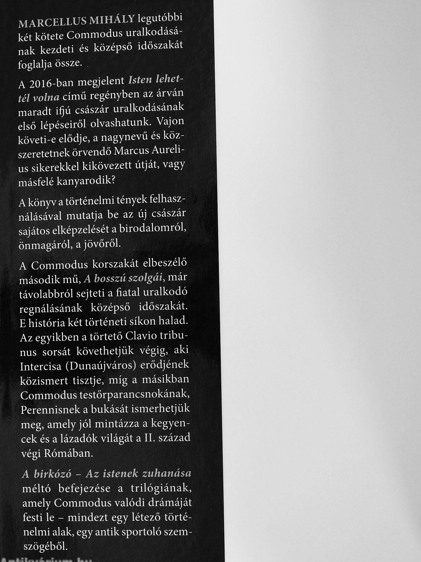 Marcellus Mihály e regénye a Commodus trilógia befejező része. A kötet a fiatal császár uralkodásának végét mutatja be, és az azt követő történelmi forgatagot, az írótól megszokott hitelessé^^-l és regényességgel.