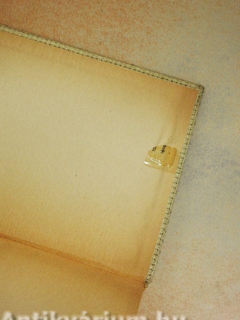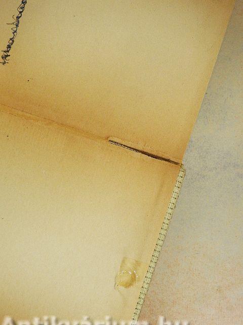 A borító belső oldalán ragasztásnyom található. A kötés megtört. Az előzéklapon tulajdonosi bejegyzés található.