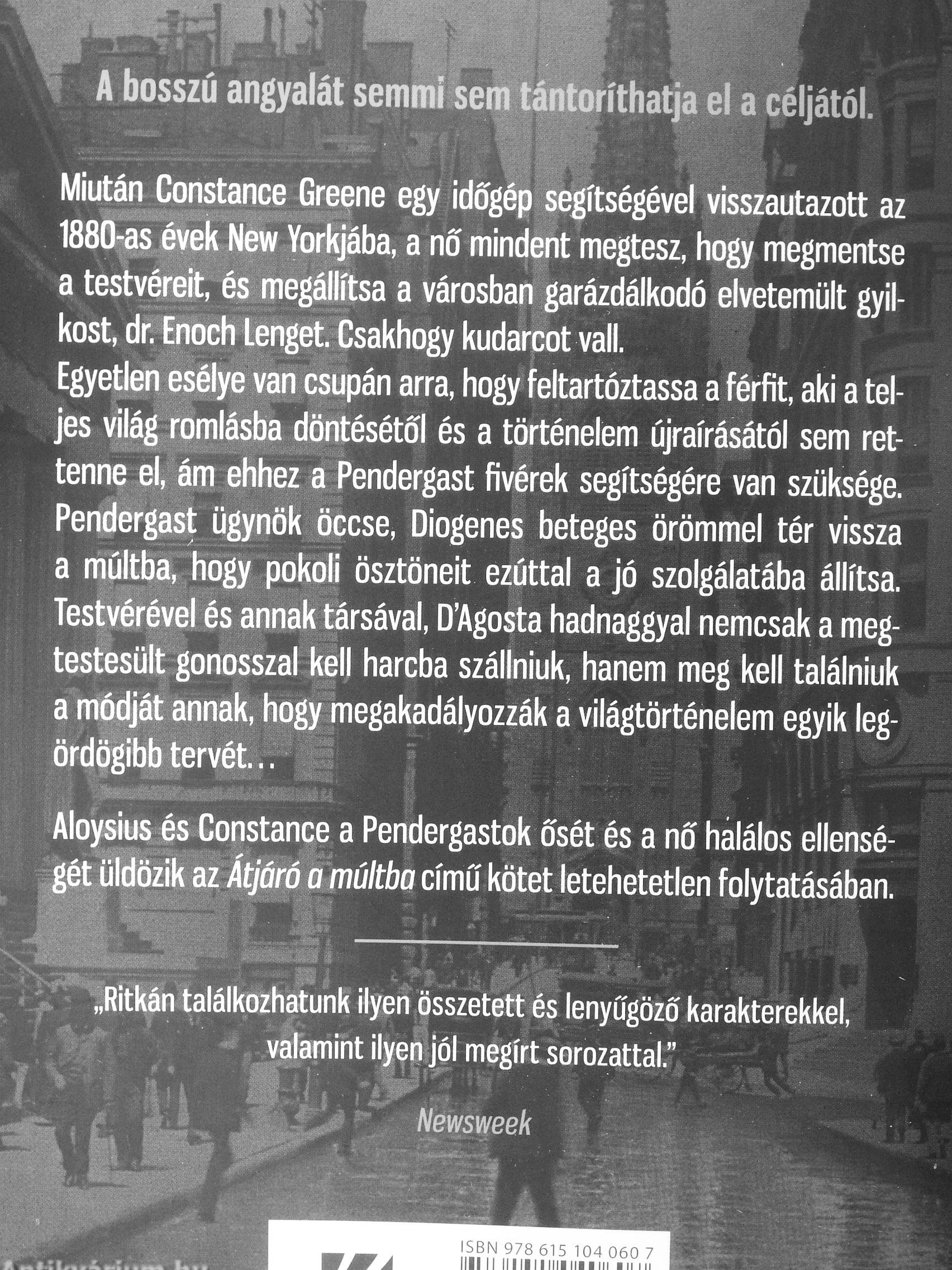 1880-as évek New Yorkjába^ flinő rtiindent megtesz, hogy megmentse a testvéreit, és megállítsa á városban garázdálkodó elvetemült gyilkost, dr. Enoch Lenget. Csakhogy kudarcot vall. Egyetlen esélye van csupán arra, hogy feltartóztassa a férfit, aki a teljes világ romlásba döntésétől és a történelem újraírásától sem rettenne el, ám ehhez a Pendergast fivérek segítségére van szüksége. Pendergast ügynök öccse, Diogenes beteges örömmel tér vissza a múltba, hogy pokoli ösztöneit ezúttal a jó szolgálatába állítsa. Testvérével és annak társával, D'Agosta hadnaggyal nemcsak a megtestesült gonosszal kelj harcba szállniuk, hanem meg kell találniuk a módját annak, hogy megakadályozzák a világtörténelem egyik leg-ördööibb tervét