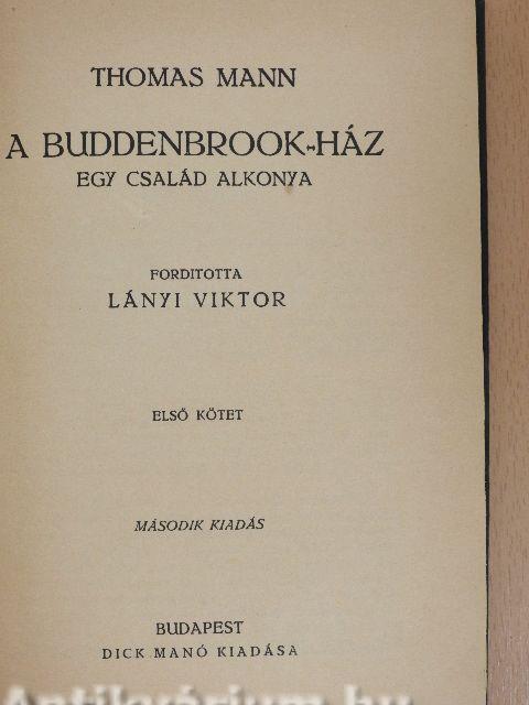 Buddenbrook konzulné ott ült anyósa oldalán, a szögletes vázú, fehérre lakkozott, aranyos oroszlánfővel díszített pamlagon, amelynek párnázata halványsárga kelmével volt behúzva. Egy pillantást vetve a férjére, aki mellette karosszékben ült, sietett kisegíteni zavarából a kislányát, akit nagyapja az ablaknál térdén lovagoltatott.