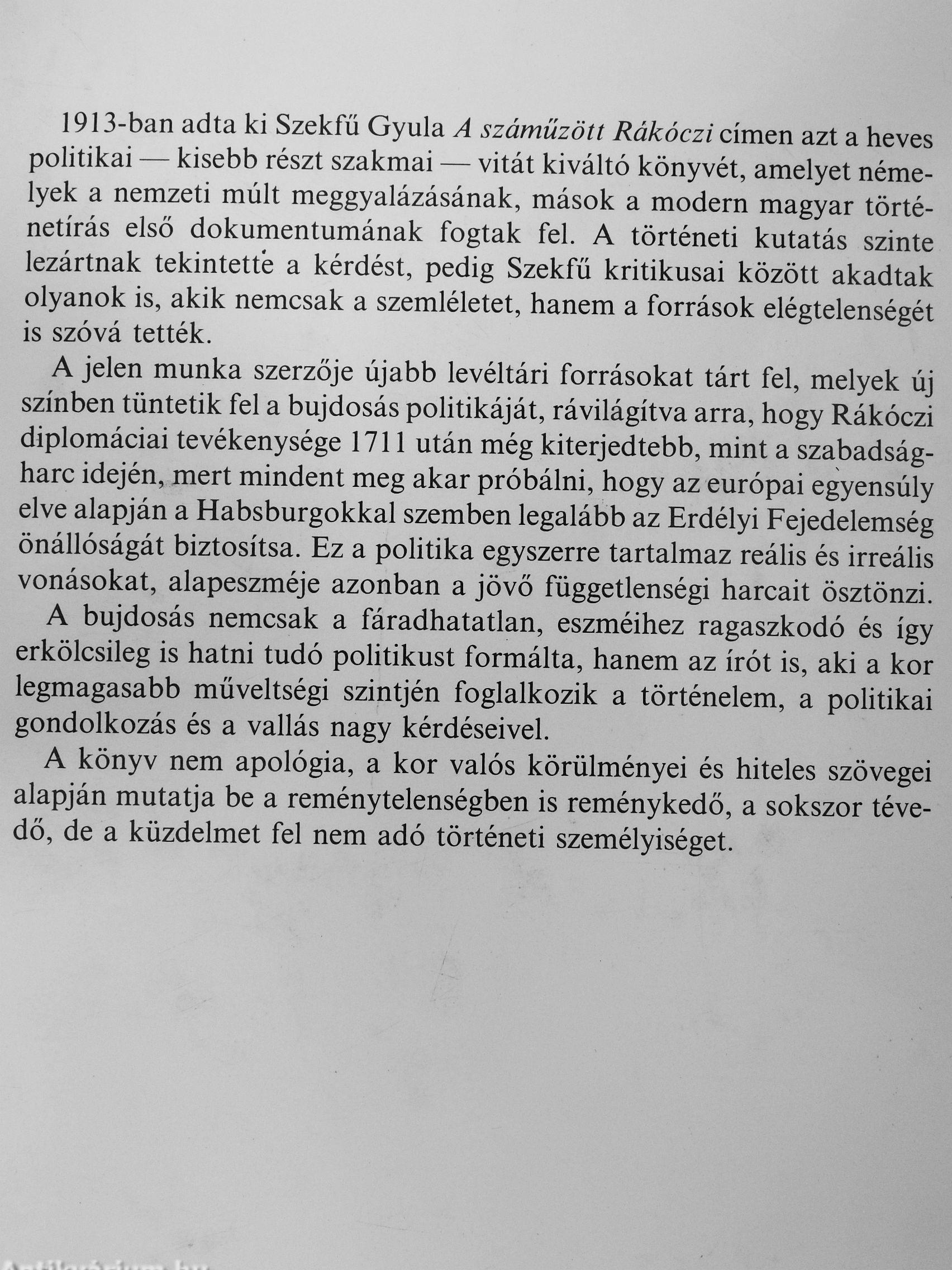 A könyv nem apológia, a kor valós körülményei és hiteles szövegei alapján mutatja be a reménytelenségben is reménykedő, a sokszor tévedő, de a küzdelmet fel nem adó történeti személyiséget. Vissza