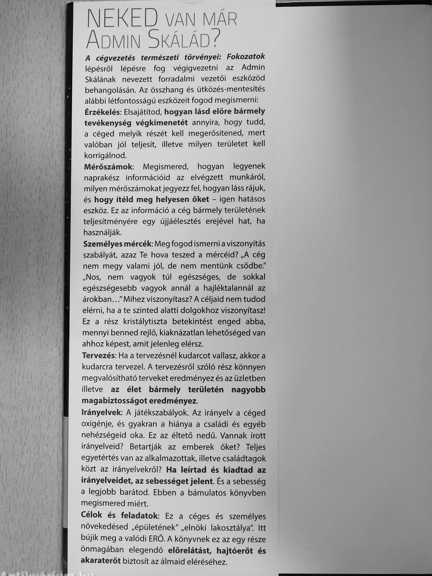 |Üzletí/Személyes irányszabás Wezérszónoki és Tréning-előadások rh6.hu, bolt.h6.hu •• www.adminscale.net,adminskala.hu ^ Borító terv: Kovács Illés -r«- - í-^^^K