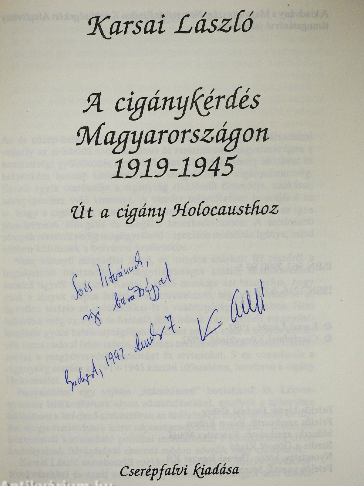 A cigánykérdés Magyarországon 1919-1945 (dedikált példány) A cigánykérdés Magyarországon 1919-1945 (dedikált példány) A cigánykérdés Magyarországon 1919-1945 (dedikált példány)