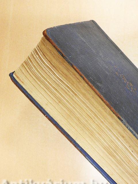 A borító kopott. A lapélek és néhány lap foltos.