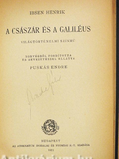 | Megjegyzés: | Ibsen Henrik fekete-fehér képével illusztrálva. Norvégból fordította és bevezetéssel ellátta Puskás Endre. Athenaeum r.-t. könyvnyomdája nyomása, Budapest. |
