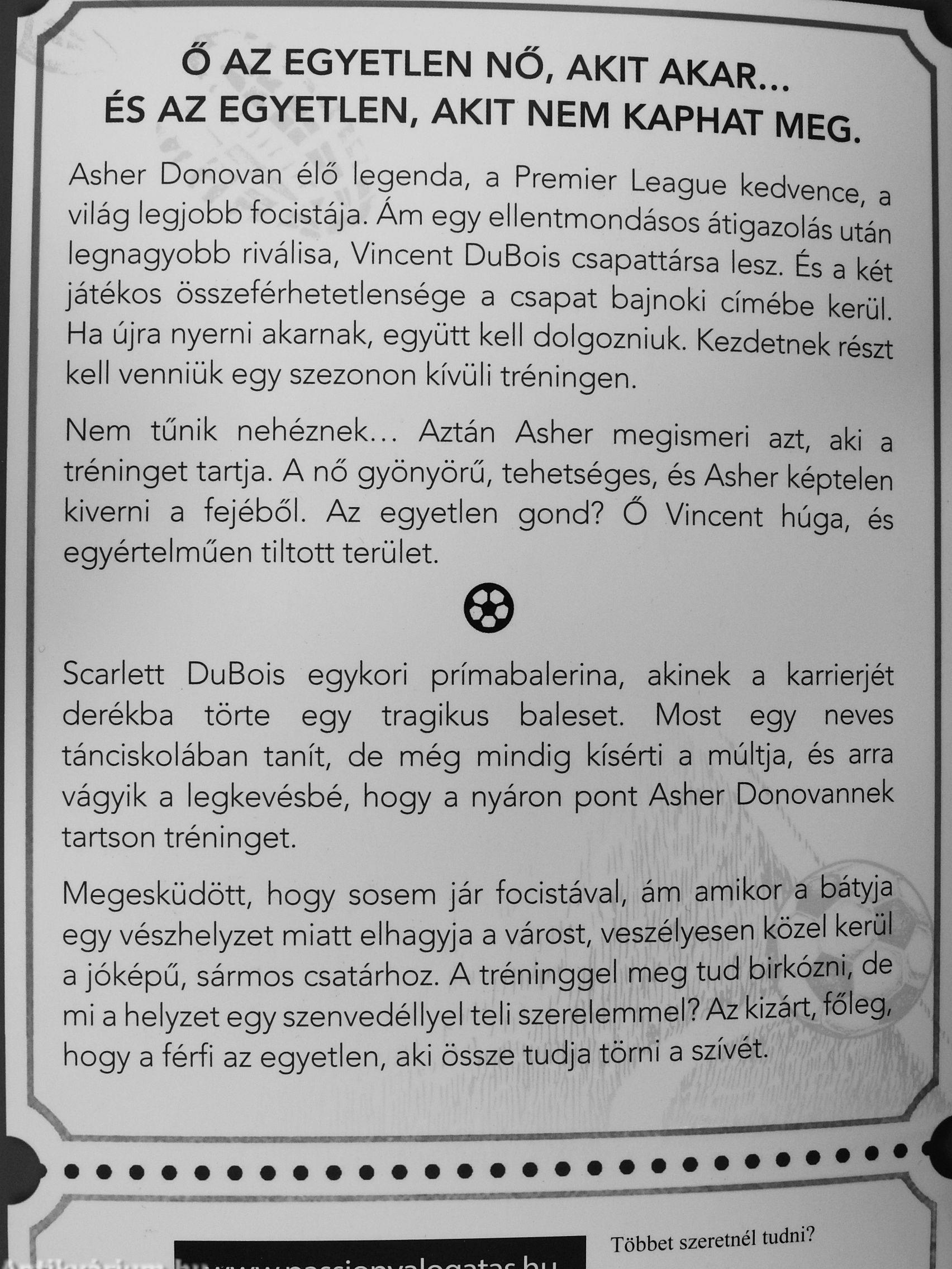 Nem tűnik nehéznek Aztán Asher megismeri azt, aki a tréninget tartja. A nő gyönyörű, tehetséges, és Asher képtelen kiverni a fejéből. Az egyetlen gond? Ö Vincent húga, és egyértelműen tiltott terület.