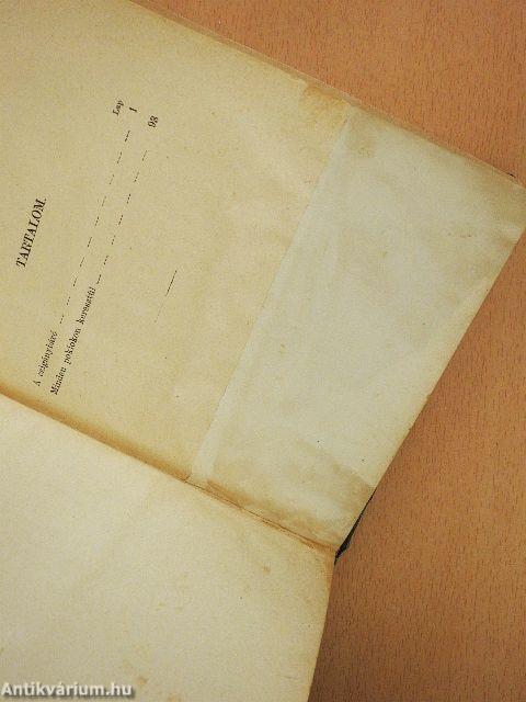 Az eredeti borító a könyvbe lett kötve. A borító kopott, éle sérült. Könyvtári könyv volt. Néhány oldal javított.
