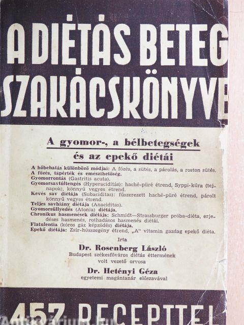 | Megjegyzés: | Írta Dr. Rosenberg László Budapest székesfőváros diétás éttermének volt vezető orvosa. Dr. Hetényi Géza egyetemi magántanár előszavával. 457 receptet tartalmaz. Nyomtatta a Gyarmati és Bősz nyomda, Budapest. |