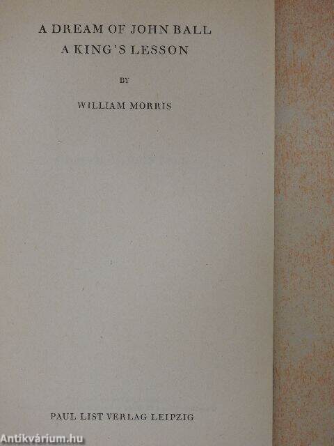 In A DREAM OF JOHN BALL and in A KIN G' S LES S O N can be found William Morris the poet, the painter, the seeker for beauty, and, not the least, the critic who based his criticism of all things - life, the arts, history, the world - in the teachings of Karl Marx.