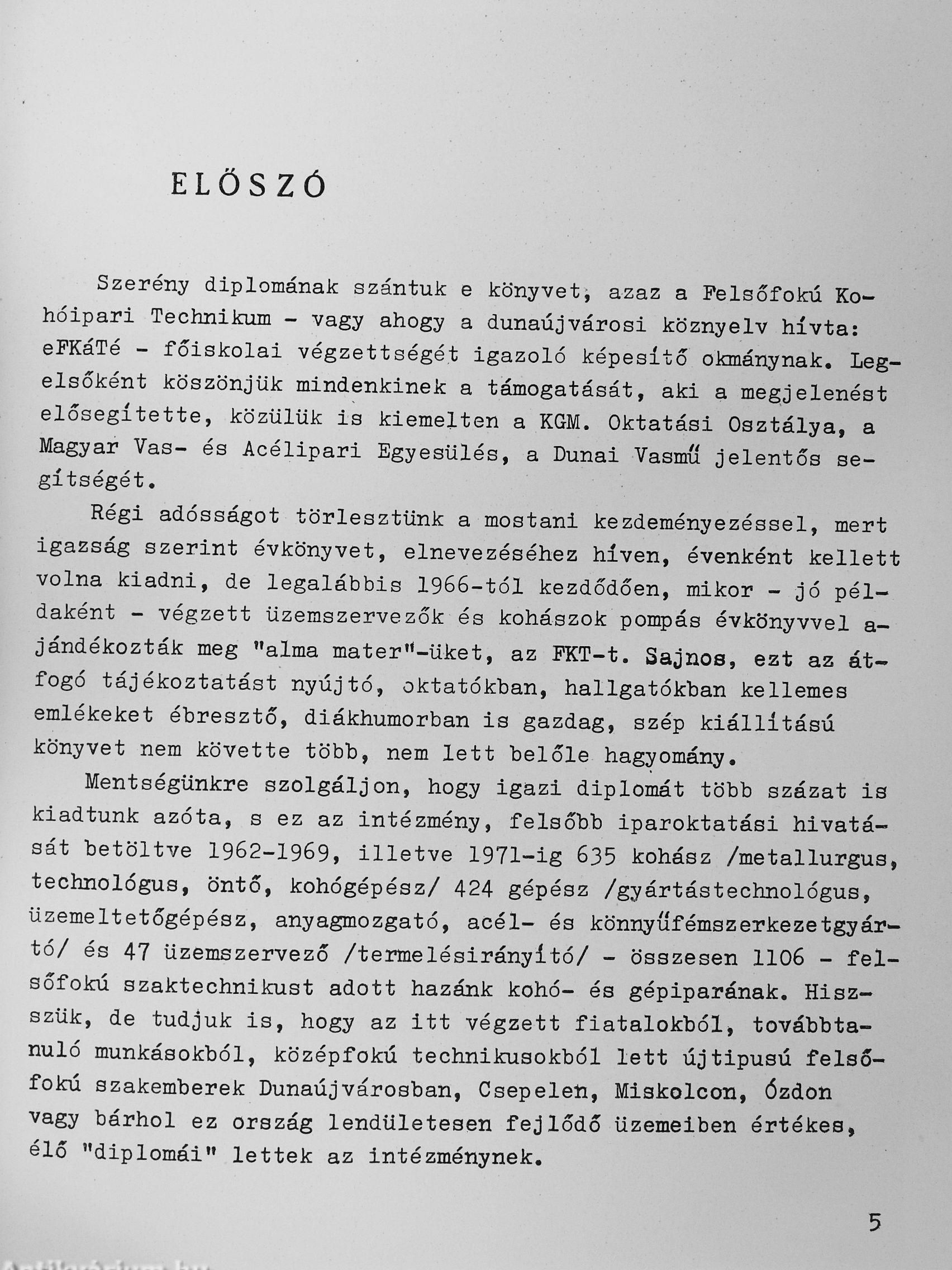 | Sorozatcím: | A dunaújvárosi Felsőfokú Kohóipari Technikum történeti évkönyve |