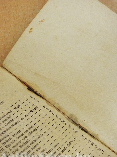 A borító töredezett, a gerinc javított. Több oldal foltos.