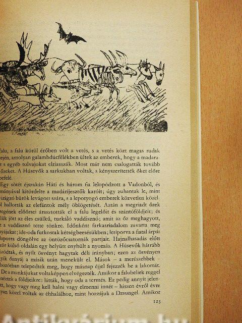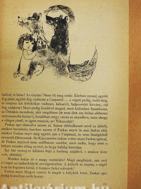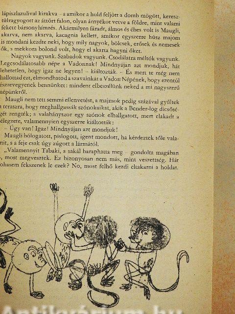 A bozótban megreccsennek a bokrok, és Farkas apó ugrásra készen, szinte a levegőben torpan meg, mert az orra előtt, egy alacsony ágba kapaszkodva meztelen kisgyerek áll. Soha ilyen pici, gödrös húsú embervakarcs nem került még éjnek idején farkas barlangjába. Maugli, a csupasz emberkölyök, bárhogy került is oda, ott marad, életét megváltotta a Szabad Nép Csapatának gyűlésén Bagira, a Fekete Párduc, egy frissen ejtett fiatal bikával és Balú, az öreg medve, a Vadon Törvényének mestere pedig jó szavával. Mauglit Farkas anyó neveli fel saját négy kölykével együtt, s az emberkölyök éppúgy érti a fű zizzenését, a baglyok huhogását, mint minden más élőlény a vadonban. Idővel oly merészen lódítja magát ágról ágra, hogy a szürke majmok sem különben. Elfoglalja helyét a Gyűlés Szikláján is, s ahogy nő, a falka testvérének tekinti s mindannyian a Dzsungel Urának. Akik Indiában jártak, és sokáig éltek a dzsungel közelében, mind azt állítják, hogy ez a táj semmi máshoz nem hasonlítható. Ott pirosabb a piros, zöldebb a zöld, a vizek és az ég csillogása kékebb és ezüstösebb, s aki egyszer ott élt, a vadállatokra is szeretettel gondol vissza. Rudyard Kipling is Indiában látta meg a napvilágot, ahol apja - angol szobrász és festő - azért telepedett meg, hogy felkutassa India művészetét, az őserdő mélyén rejtőző csodákat. Rudyard Kipling is apja nyomán járt, és bár beutazta a világot, és hírneves író, költő lett, soha semmi nem férkőzött olyan közel szívéhez, mint a dzsungel, és soha semmit nem írt meg olyan szépen, mint a Vadon Népének életét. Benedek Marcell ihletett tolmácsolása, Weöres Sándor gyönyörű versfordításai, Szántó Piroska rajzai festőien tárják az olvasó elé ennek a semmihez sem hasonlítható világnak tájait és alakjait.