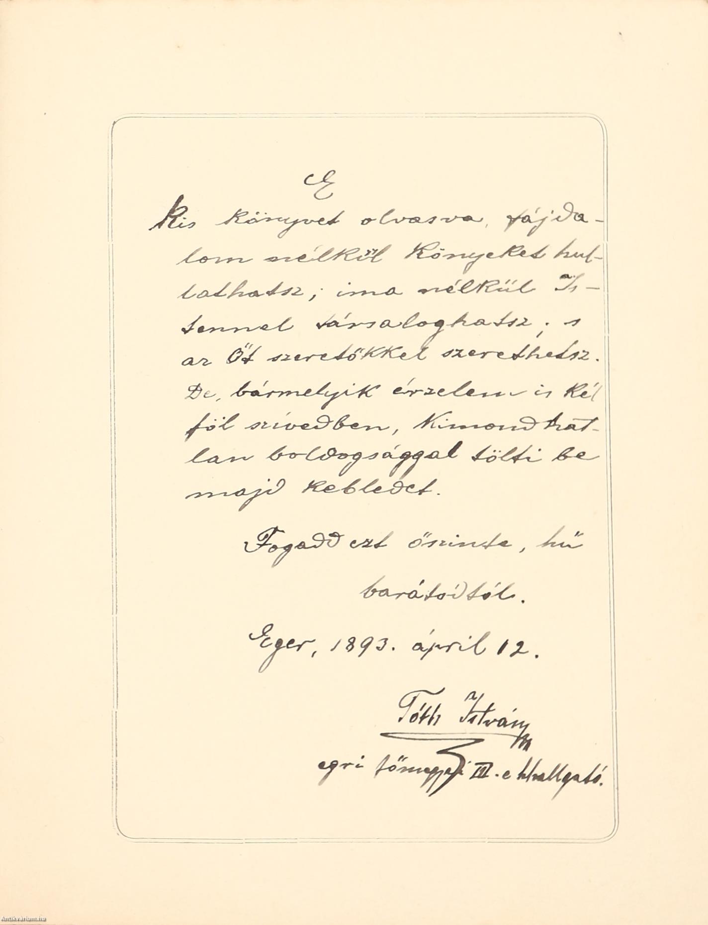 | Megjegyzés: | Nyomatta Kner Izidor Könyvnyomdája, Gyomán. Könyvdíszekkel. |
