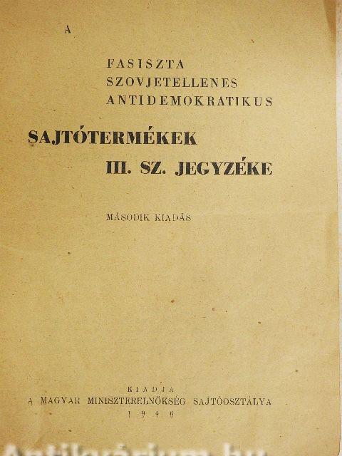 A fasiszta szovjetellenes antidemokratikus sajtótermékek III. sz. jegyzéke A fasiszta szovjetellenes antidemokratikus sajtótermékek III. sz. jegyzéke A fasiszta szovjetellenes antidemokratikus sajtótermékek III. sz. jegyzéke