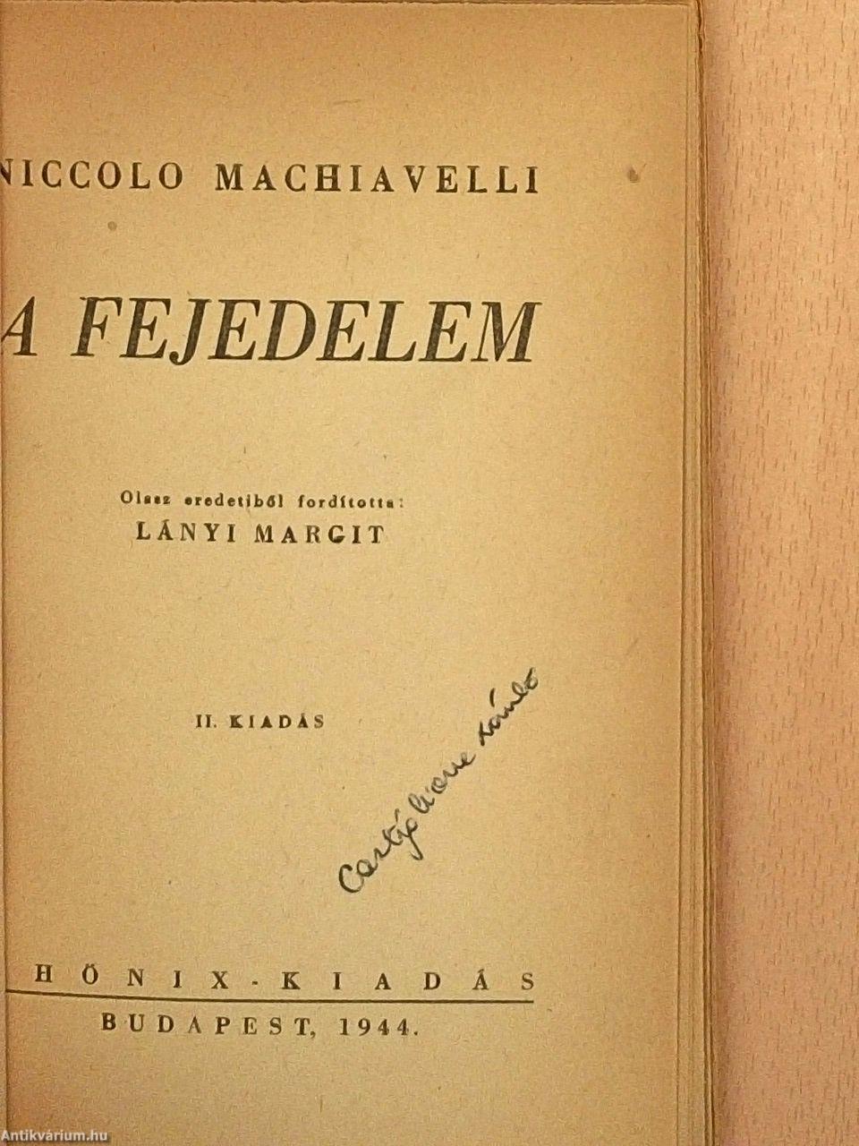 | Hogyan kell kormányozni az olyan városokat és fejdelemségeket, amelyeknek meghódításuk előtt saját törvényeik voltak | 29 |