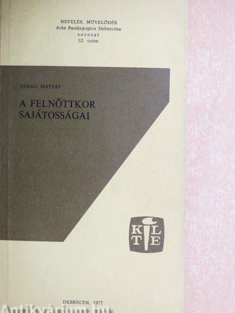| A felnőttkori sajátosságoknak, ill. a pszichikus fejlettség kialakult szintjének a jelentősége a felnőttnevelésben és közművelődésben | 115 |