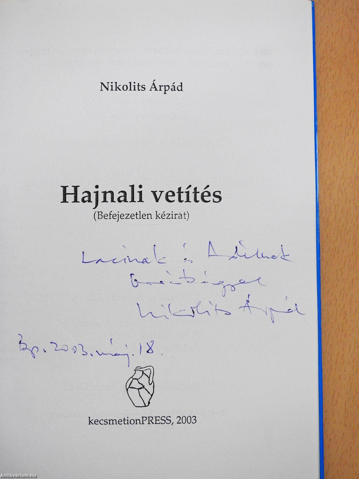 | Megjegyzés: | Nikolits Árpád szerző által dedikált példány. Fekete-fehér illusztrációkkal. Amatőr védődobozban. |