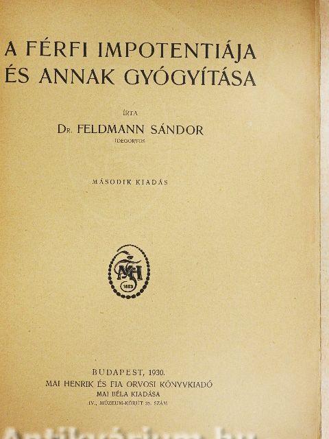"A férfi impotentiája és annak gyógyítása" cím alatt kerül az olvasó elé az a sok leszűrt tapasztalat, melyet mint a pszichoanalizissel gyakorlatilag is foglalkozó orvosnak betegek gyógyítása alkalmával alkalmam volt megszerezni.